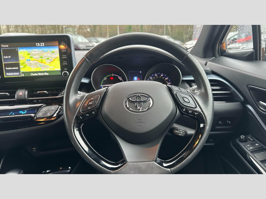 The highlights of this Toyota C-HR demonstrate its superiority over similar vehicles. Its low CO2 emissions and low insurance group make it an economical choice for everyday driving. Furthermore, its brisk acceleration, achieving 0-62mph in just 8.2 seconds, ensures a dynamic driving experience without compromising on efficiency. This combination of performance, economy, and advanced features makes the C-HR VVT-h Design a compelling option. 18in Alloy Wheels - 5 Double Spoke - Black Machined-Faced, 3-Spoke Nappa Leather Steering Wheel with Multimedia Switches, 4.2in Colour TFT Screen for Multi-Information Display, ABS - Anti Lock Braking System, Adaptive Cruise Control, Adjustable Rear Headrests, Adjustable Speed Limiter -ASL- Switch on Steering Wheel, Audio and Telephone Switches on Steering Wheel, Auto Headlights, Automatic Headlight Cut-Off, Automatic High Beam, Black Centre Console, Black Front Bumper, Black Front Door Assist Grips, Black Lower Dashboard, Black Lower Driver Dashboard, Black Upper Dashboard, Black Upper Front Grille, Black and Body-Coloured Rear Bumper, Blue Ambient Lighting on Front Cup Holders, Blue Ambient Lighting on Front Doors, Bluetooth Connectivity, Body-Coloured Door Mirrors and Handles, Body-Coloured Front Bumper, Boot Door Release with Push Button, Boot Lamp, Child Safety Locks on Rear Doors, Chrome Interior Door Handles, DAB Digital Radio, Driver and Front Passenger Personal Lights, Driver and Front Passenger Whiplash Injury Lessening - WIL - Seats, Driver and Passenger Seatback Pockets, Dual-Zone Automatic Air Conditioning, Electric and Heated Door Mirrors, Electrically Assisted Power Steering - EPS, Electrochromatic Rear-View Mirror, Electronic Parking Brake, Floor Mats, Follow Me Home Headlights, Front 12V Power Outlet, Front Cup Holders, Front Fog Lights, Front LED Light Guide, Front Passenger Airbag On-Off Switch, Front and Centre Pillar Assist Grips, Front and Rear Power Windows with Auto Up-Down and Anti-Jam Protection, Front and Rear Spoilers, Glass-Breaking Alarm Sensors, Glovebox with Internal Light, HAC - Hill Start Assist Control, Hard Tonneau Cover, Heated Driver and Front Passenger Seat, High Mounted Rear Brake Light - LED, Honeycomb Lower Front Grille, Hooks for Luggage Holding Belt, Humidifying Nanoe Air Purifier, Hybrid System Indicator, ISOFIX Fixing Points, Illuminated Entry System, Immobiliser, Intrusion Alarm, LED Daytime Running Lights, LED Rear Brake Lights, LED Rear Combination Lights, Leather Gear Shift, Light and Mirror on Driver and Front Passenger Sun Visors, Manual Headlight Levelling, Manual Tilting and Telescopic Steering Wheel, Manually Adjustable Lumbar Support on Driver Seat, Manually Height-Adjustable Sliding and Reclining Driver Seat, Manually Height-Adjustable Sliding and Reclining Front Passenger Seat, Microphone on Front Personal Light, Motion Sensor Alarm, Noise Reduction Layer on Front Windows and Windscreen, Pollen Air Filter, Power Door Locks, Power Passenger Window Lock, Power-Adjustable Door Mirrors, Privacy Glass, Rain Sensing Wipers, Rear Seats 60-40 Split Folding, Rear Tailgate, Rear Window Defogger, Rear Window Wiper, Remote Boot Door Release in Cabin, Remote Boot Door Release on Key, Remote Door Locking, Reversing Camera, Road Sign Assist, Satin Grey Deco Line on Upper Dashboard, Seat Belt - Pre-Tensioners and Force Limiters, Seat Belt Reminder - Front and Rear, Seats - Front Sport, Shark Fin Antenna, Shopping Bag Hooks, Simple Intelligent Park Assist, Slow Opening Lower Glovebox, Smart Entry and Push-Button Start, Speakers x6, Supplemental Restraint System - SRS - Airbags - 5 Airbags, TPMS - Tyre Pressure Monitoring System, Toyota Safety Sense, Toyota Touch 2 Multimedia System with 7in Display, Toyota Touch 2 with Go Navigation, USB and Aux In Connectors and 12V Front Outlet, UV-Filter on Drivers and Front Passenger Windows, UV-Filter on Rear Windows, VSC - Vehicle Stability Control, Voice Recognition, Wi-Fi Connectivity
