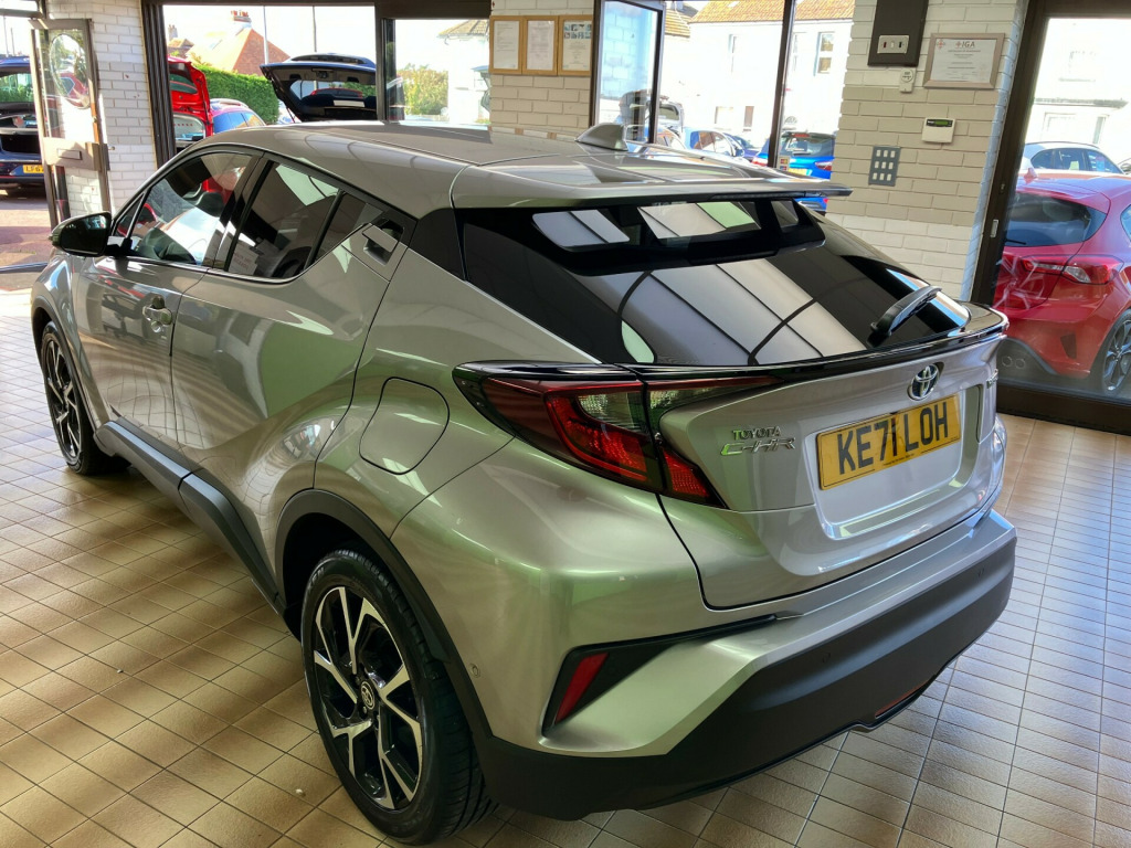 Now in the Showroom a Stunning Design SUV 5 Dr 1.8 VVT-h GPF Hybrid CVT Euro 6 (s/s) (122 ps) with 40,000 Miles.This phenomenal looking car is finished in Silver which features a concentrated metallic finish swathing the the muscular body contours.A beautiful interior designed to the highest standards.Key features include an 18-inch alloy wheel, a 4.2-inch TFT multi-information display, 8in Toyota Smart Connect multimedia system with DAB radio, Bluetooth, and wireless Apple CarPlay and Android Auto and safety features like blind spot monitoring, reverse camera, and pre-collision warning. This model is known for its fuel efficiency and hybrid technology, which charges automatically while driving. Its powerfully distinctive style makes it a bold choice., in alloy wheels - 5 double spoke, automatic headlight cut-off, automatically retractable door mirrors, black and body-coloured rear bumper, body coloured door handles, body coloured door mirrors, body coloured front spoiler, body-coloured front bumper, chrome interior door handles, front led light guide, front power windows, honeycomb lower front grille, noise reduction layer on front windows and windscreen, privacy glass, rear power windows, rear spoiler, rear tailgate, tyre repair kit, uv-filter on drivers and front passenger windows, uv-filter on rear windows, 3-spoke nappa leather steering wheel, adjustable rear headrests, adjustable speed limiter -asl- switch on steering wheel, audio and telephone switches on steering wheel, auto dimming rear view mirror, auto up and down function on power windows, auto wipers, black centre console, black front door assist grips, black lower dashboard, black lower driver dashboard, black upper dashboard, blue ambient lighting on front cup holders, blue ambient lighting on front doors, boot door release with push button, boot light, driver and front passenger personal lights, driver and passenger seatback pockets, dual-zone automatic air conditioning, floor mats, front cup holders, front and centre pillar assist grips, glovebox with light, gun metal grey deco line on upper dashboard, hard tonneau cover, heated driver and front passenger seat, hooks for luggage holding belt, humidifying nanoe air purifier, illuminated entry system, leather gear shift, light on driver sun visor, light on passenger sun visor, manual height adjustable front passengers seat, manual height adjustable for drivers seat, manual tilt steering wheel, manually reclining driver seat, manually reclining front passengers seat, manually sliding drivers seat, manually sliding front passenger seat, microphone on front personal light, mirror on driver sun visor, mirror on passenger sun visor, multimedia switches on steering wheel, pollen air filter, power adjustable lumbar support on driver seat, power passenger window lock, rear headrests x3, rear seats 60-40 split folding, rear window defogger, seats - front sport, shopping bag hooks, slow opening lower glovebox, steering wheel - manual telescopic adjustment, voice recognition switch on steering wheel, 4.2in colour tft screen for multi-information display, 8in hd toyota smart connect multimedia system, am-fm radio, bluetooth connectivity, digital audio broadcast - dab, front 12v power outlet, shark fin antenna, speakers x6, usb connector, wi-fi connectivity, abs - anti lock braking system, acoustic vehicle alert system - avas, anti-jam protection on power windows, child safety locks on rear doors, driver and front passenger whiplash lessening - headrest, electronic parking brake, glass-breaking alarm sensors, hac - hill start assist control, isofix seat fixing - rear, immobiliser, intrusion alarm, motion sensor alarm, parking pack, passenger airbag on-off switch, power door locks, pre-collision warning system with pedestrian detection, rear cross traffic alert - rcta, rear window wiper, remote door locking, seat belt - pre-tensioners and force limiters, seat belt reminder - front and rear, smart entry and push-button start, supplemental restraint system - srs - airbags - 5 airbags, vsc - vehicle stability control, adaptive cruise control, adjustable speed limiter - asl, blind spot monitor - bsm, electric power steering - eps, hybrid system indicator, lane departure alert with switches on steering wheel, reversing camera, road sign assist, simple intelligent park assist, tpms - tyre pressure monitoring system, voice recognition, auto headlights, automatic high beam, follow me home headlights, front fog lights, led daytime running lights, led high-mounted stop light, led rear brake lights, led rear combination lights, led reflector headlights, manual headlight levelling