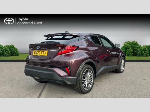 This 2022 Toyota C-HR VVT-h Excel is a truly exceptional example, boasting a single owner from new and an incredibly low mileage of just 13,806 miles, supported by a full service history and valid MOT until June 2026. As a Toyota manufacturer approved vehicle, it has undergone rigorous checks, with its last service completed on 3rd June 2025 at 13,650 miles. This Euro 6 compliant hybrid is equipped with Smart Entry and Push-Button Start for effortless access, a reversing camera with parking assistance, and automatic headlights for enhanced visibility. Inside, you'll find dual-zone automatic air conditioning for personalised comfort and a parking pack featuring front and rear sensors to aid manoeuvrability.