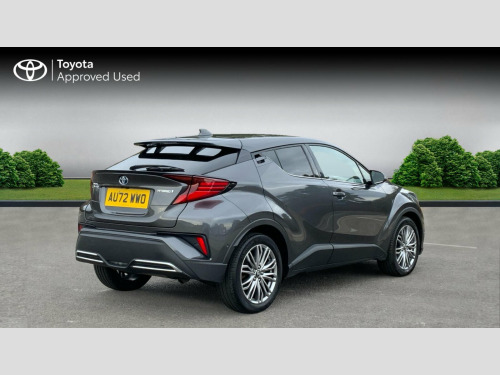 This 2022 Toyota C-HR Excel is a Toyota manufacturer approved vehicle with a full service history, most recently serviced at 53,603 miles on 22 August 2025, and benefits from a 12 month warranty for your peace of mind. This Euro 6 compliant model, with its 2.0 Petrol Hybrid engine, has only had one owner and boasts an MOT valid until September 2026. Notable features include Adaptive Cruise Control, a Reversing Camera, a Heated Steering Wheel Leather - Black, 18in Alloy Wheels - 10 Double Spoke - Dark Chrome, 3-Spoke Nappa Leather Steering Wheel, 4.2in Colour TFT Screen for Multi-Information Display, ABS - Anti Lock Braking System, AM-FM Radio, Acoustic Vehicle Alert System - AVAS, Adaptive Cruise Control, Adaptive Front Light System - AFS, Adaptive LED Headlights, Adjustable Rear Headrests, Adjustable Speed Limiter - ASL, Adjustable Speed Limiter -ASL- Switch on Steering Wheel, Anti-Jam Protection on Power Windows, Audio and Telephone Switches on Steering Wheel, Auto Dimming Rear View Mirror, Auto Headlights, Auto Up and Down Function on Power Windows, Automatic Headlight Cut-Off, Automatic Headlight Levelling, Automatic High Beam, Black Centre Console, Black Front Door Assist Grips, Black Lower Dashboard, Black Lower Driver Dashboard, Black and Body-Coloured Rear Bumper, Blue Ambient Lighting on Front Cup Holders, Blue Ambient Lighting on Front Doors, Bluetooth Connectivity, Body Coloured Door Handles, Body Coloured Door Mirrors, Body Coloured Front Spoiler, Body-Coloured Front Bumper, Boot Door Release with Push Button, Boot Light, Child Safety Locks on Rear Doors, Chrome Interior Door Handles, Dark Brown Upper Dashboard, Digital Audio Broadcast - DAB, Driver and Front Passenger Personal Lights, Driver and Front Passenger Whiplash Lessening - Headrest, Driver and Passenger Seatback Pockets, Dual-Zone Automatic Air Conditioning, Electric Power Steering - EPS, Electric and Heated Door Mirrors, Electronic Parking Brake, Floor Mats, Follow Me Home Headlights, Front 12V Power Outlet, Front Cup Holders, Front Fog Lights - LED, Front LED Light Guide, Front Power Windows, Front and Centre Pillar Assist Grips, Glass-Breaking Alarm Sensors, Glovebox with Light, HAC - Hill Start Assist Control, Hard Tonneau Cover, Heated Driver and Front Passenger Seat, Honeycomb Lower Front Grille, Hooks for Luggage Holding Belt, Humidifying Nanoe Air Purifier, Hybrid System Indicator, ISOFIX Seat Fixing - Rear, Illuminated Entry System, Immobiliser, Intrusion Alarm, LED Daytime Running Lights, LED High-Mounted Stop Light, LED Rear Brake Lights, LED Rear Combination Lights, Lane Departure Alert with Switches on Steering Wheel, Leather Gear Shift, Leather Pack, Light on Driver Sun Visor, Light on Passenger Sun Visor, Manual Height Adjustable Front Passengers Seat, Manual Tilt Steering Wheel, Manually Reclining Front Passengers Seat, Manually Sliding Front Passenger Seat, Microphone on Front Personal Light, Mirror on Driver Sun Visor, Mirror on Passenger Sun Visor, Motion Sensor Alarm, Multimedia Switches on Steering Wheel, Noise Reduction Layer on Front Windows and Windscreen, Parking Pack, Passenger Airbag On-Off Switch, Pollen Air Filter, Power Adjustable Lumbar Support on Driver Seat, Power Door Locks, Power Passenger Window Lock, Pre-Collision Warning System with Pedestrian Detection, Privacy Glass, Rear Headrests x3, Rear Power Windows, Rear Seats 60-40 Split Folding, Rear Sequential Indicators, Rear Spoiler, Rear Tailgate, Rear Window Defogger, Rear Window Wiper, Remote Door Locking, Reversing Camera, Road Sign Assist, Seat Belt - Pre-Tensioners and Force Limiters, Seat Belt Reminder - Front and Rear, Seats - Front Sport, Shark Fin Antenna, Shopping Bag Hooks, Silver Deco Line on Upper Dashboard, Simple Intelligent Park Assist, Slow Opening Lower Glovebox, Smart Entry and Push-Button Start, Smartphone Integration - Apple Car Play and Android Auto, Speakers x6, Steering Wheel - Heated, Steering Wheel - Manual Telescopic Adjustment, Supplemental Restraint System - SRS - Airbags - 5 Airbags, TPMS - Tyre Pressure Monitoring System, Tech Pack, Toyota Touch 2 Multimedia System with 8in Display, Toyota Touch 2 with Go Navigation System, Tyre Repair Kit, USB Connector, UV-Filter on Drivers and Front Passenger Windows, UV-Filter on Rear Windows, VSC - Vehicle Stability Control, Voice Recognition, Voice Recognition Switch on Steering Wheel, Wi-Fi Connectivity
