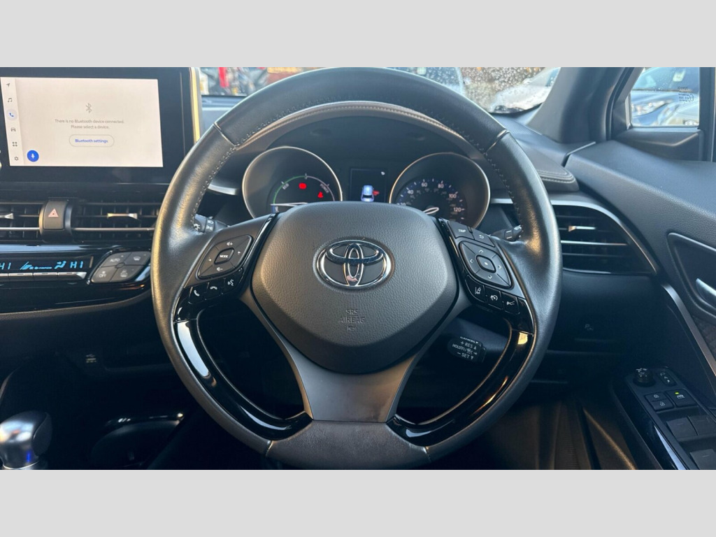 The highlights of this C-HR truly set it apart. With an impressive fuel economy of 57 mpg, it offers significant savings on running costs compared to many other vehicles. Furthermore, its low CO2 emissions and low insurance group rating demonstrate its efficiency and affordability, making it a sensible and economical choice for everyday driving. 18in Alloy Wheels - 10 Double Spoke - Dark Chrome, 3-Spoke Nappa Leather Steering Wheel, 4.2in Colour TFT Screen for Multi-Information Display, ABS - Anti Lock Braking System, AM-FM Radio, Acoustic Vehicle Alert System - AVAS, Adaptive Cruise Control, Adaptive Front Light System - AFS, Adaptive LED Headlights, Adjustable Rear Headrests, Adjustable Speed Limiter - ASL, Adjustable Speed Limiter -ASL- Switch on Steering Wheel, Anti-Jam Protection on Power Windows, Audio and Telephone Switches on Steering Wheel, Auto Dimming Rear View Mirror, Auto Headlights, Auto Up and Down Function on Power Windows, Automatic Headlight Cut-Off, Automatic Headlight Levelling, Automatic High Beam, Black Centre Console, Black Front Door Assist Grips, Black Lower Dashboard, Black Lower Driver Dashboard, Black and Body-Coloured Rear Bumper, Blue Ambient Lighting on Front Cup Holders, Blue Ambient Lighting on Front Doors, Bluetooth Connectivity, Body Coloured Door Handles, Body Coloured Door Mirrors, Body Coloured Front Spoiler, Body-Coloured Front Bumper, Boot Door Release with Push Button, Boot Light, Child Safety Locks on Rear Doors, Chrome Interior Door Handles, Dark Brown Upper Dashboard, Digital Audio Broadcast - DAB, Driver and Front Passenger Personal Lights, Driver and Front Passenger Whiplash Lessening - Headrest, Driver and Passenger Seatback Pockets, Dual-Zone Automatic Air Conditioning, Electric Power Steering - EPS, Electric and Heated Door Mirrors, Electronic Parking Brake, Floor Mats, Follow Me Home Headlights, Front 12V Power Outlet, Front Cup Holders, Front Fog Lights - LED, Front LED Light Guide, Front Power Windows, Front and Centre Pillar Assist Grips, Glass-Breaking Alarm Sensors, Glovebox with Light, HAC - Hill Start Assist Control, Hard Tonneau Cover, Heated Driver and Front Passenger Seat, Honeycomb Lower Front Grille, Hooks for Luggage Holding Belt, Humidifying Nanoe Air Purifier, Hybrid System Indicator, ISOFIX Seat Fixing - Rear, Illuminated Entry System, Immobiliser, Intrusion Alarm, LED Daytime Running Lights, LED High-Mounted Stop Light, LED Rear Brake Lights, LED Rear Combination Lights, Lane Departure Alert with Switches on Steering Wheel, Leather Gear Shift, Leather Pack, Light on Driver Sun Visor, Light on Passenger Sun Visor, Manual Height Adjustable Front Passengers Seat, Manual Tilt Steering Wheel, Manually Reclining Front Passengers Seat, Manually Sliding Front Passenger Seat, Microphone on Front Personal Light, Mirror on Driver Sun Visor, Mirror on Passenger Sun Visor, Motion Sensor Alarm, Multimedia Switches on Steering Wheel, Noise Reduction Layer on Front Windows and Windscreen, Parking Pack, Passenger Airbag On-Off Switch, Pollen Air Filter, Power Adjustable Lumbar Support on Driver Seat, Power Door Locks, Power Passenger Window Lock, Pre-Collision Warning System with Pedestrian Detection, Privacy Glass, Rear Headrests x3, Rear Power Windows, Rear Seats 60-40 Split Folding, Rear Sequential Indicators, Rear Spoiler, Rear Tailgate, Rear Window Defogger, Rear Window Wiper, Remote Door Locking, Reversing Camera, Road Sign Assist, Seat Belt - Pre-Tensioners and Force Limiters, Seat Belt Reminder - Front and Rear, Seats - Front Sport, Shark Fin Antenna, Shopping Bag Hooks, Silver Deco Line on Upper Dashboard, Simple Intelligent Park Assist, Slow Opening Lower Glovebox, Smart Entry and Push-Button Start, Smartphone Integration - Apple Car Play and Android Auto, Speakers x6, Steering Wheel - Heated, Steering Wheel - Manual Telescopic Adjustment, Supplemental Restraint System - SRS - Airbags - 5 Airbags, TPMS - Tyre Pressure Monitoring System, Tech Pack, Toyota Touch 2 Multimedia System with 8in Display, Toyota Touch 2 with Go Navigation System, Tyre Repair Kit, USB Connector, UV-Filter on Drivers and Front Passenger Windows, UV-Filter on Rear Windows, VSC - Vehicle Stability Control, Voice Recognition, Voice Recognition Switch on Steering Wheel, Wi-Fi Connectivity