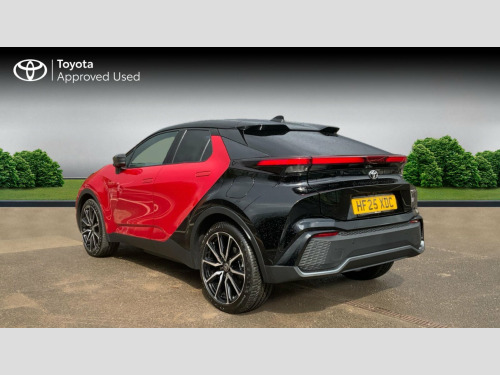 Our Demonstrator, this 2025 Toyota C-HR 2.0 Petrol Plug-in Hybrid GR SPORT has the optional SAFETY & PREMIUM PACKS. With a saving from the New MRRP of £12,445 It represents an amazing opportunity. The vehicle boasts a Premium and Safety Pack, which includes 360° Camera (PVM) with dynamic guide lines, Adaptive High-beam System, Automatic headlight levelling, Cornering lights, Digital Interior Rear View Mirror, Driver Monitor Camera, Emergency Steering Assist with Active Support, Front Cross Traffic Alert with Auto Brake, Intelligent Clearance Sonar rear with objects and Pedestrians detection, Lane Change Assist with hands on wheel, Toyota Skyview® Panoramic Roof. Manoeuvring is made easy with intelligent front parking sensors featuring clearance sonar and automatic braking.