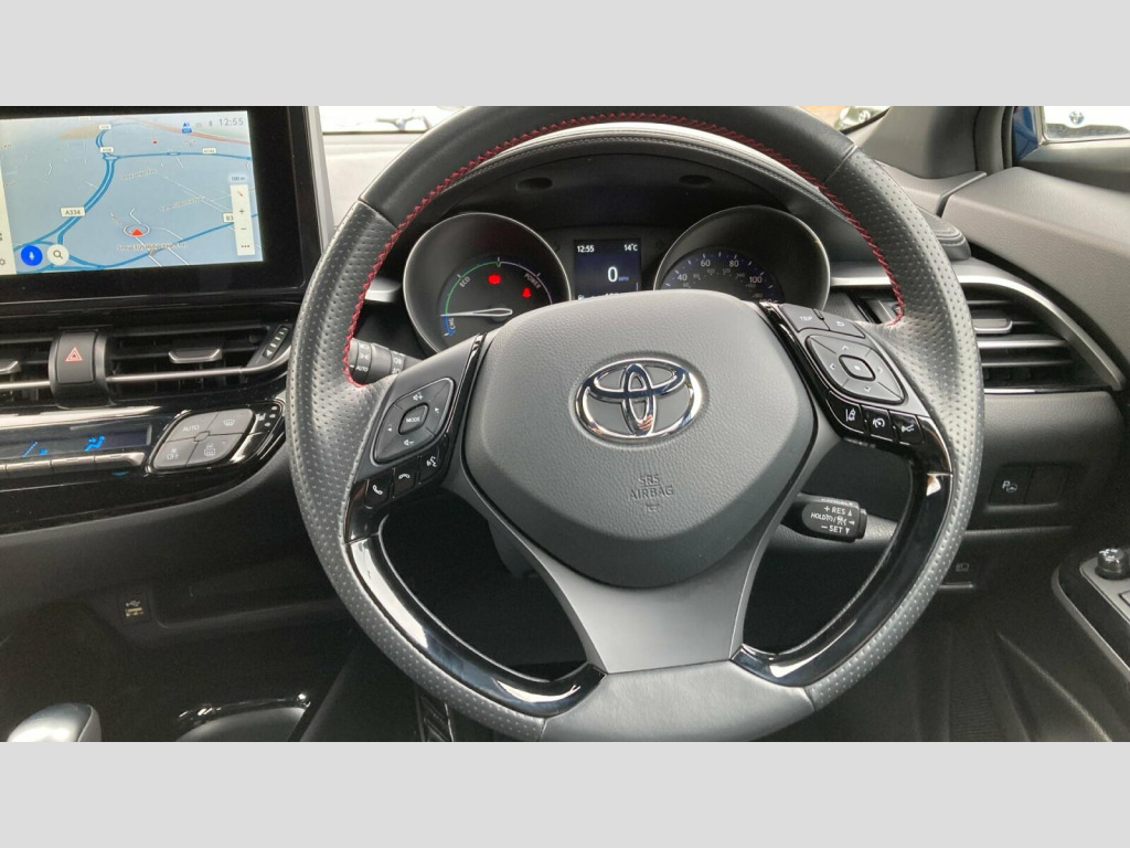 The Toyota C-HR VVT-h GR SPORT offers excellent running costs, with a highlight fuel economy of 58 mpg, demonstrating its efficiency compared to other vehicles. Its low CO2 emissions and low insurance group further contribute to its affordability, making it a sensible choice for many drivers. Adaptive cruise control adds another layer of ease to your journeys, allowing for more relaxed driving on longer trips. 19in Alloy Wheels - 5-Double-Spoke - Black Machined-Face, 3-Spoke Perforated Leather Steering Wheel, 4.2in Colour TFT Screen for Multi-Information Display, 8in HD Toyota Smart Connect Multimedia System, ABS - Anti Lock Braking System, AM-FM Radio, Acoustic Vehicle Alert System - AVAS, Adaptive Cruise Control, Adaptive Front Light System - AFS, Adaptive LED Headlights, Adjustable Rear Headrests, Adjustable Speed Limiter - ASL, Adjustable Speed Limiter -ASL- Switch on Steering Wheel, Anti-Jam Protection on Power Windows, Audio and Telephone Switches on Steering Wheel, Auto Dimming Rear View Mirror, Auto Headlights, Auto Up and Down Function on Power Windows, Automatic Headlight Cut-Off, Automatic Headlight Levelling, Automatic High Beam, Black Bi-Tone Roof, Black Centre Console, Black Front Door Assist Grips, Black Front Spoiler, Black Lower Dashboard, Black Lower Driver Dashboard, Black Upper Dashboard, Black and Body-Coloured Rear Bumper, Blue Ambient Lighting on Front Cup Holders, Blue Ambient Lighting on Front Doors, Bluetooth Connectivity, Body Coloured Door Handles, Body Coloured Door Mirrors, Body-Coloured Front Bumper, Boot Door Release with Push Button, Boot Light, Child Safety Locks on Rear Doors, Chrome Interior Door Handles, Cool Silver Deco Line on Upper Dashboard, Dark Chrome Lower Front Grille, Digital Audio Broadcast - DAB, Driver and Front Passenger Personal Lights, Driver and Front Passenger Whiplash Lessening - Headrest, Driver and Passenger Seatback Pockets, Dual-Zone Automatic Air Conditioning, Electric Power Steering - EPS, Electric and Heated Door Mirrors, Electronic Parking Brake, Floor Mats, Follow Me Home Headlights, Front 12V Power Outlet, Front Cup Holders, Front Fog Lights - LED, Front LED Light Guide, Front Power Windows, Front and Centre Pillar Assist Grips, Glass-Breaking Alarm Sensors, Glovebox with Light, HAC - Hill Start Assist Control, Hard Tonneau Cover, Heated Driver and Front Passenger Seat, Hooks for Luggage Holding Belt, Humidifying Nanoe Air Purifier, Hybrid System Indicator, ISOFIX Seat Fixing - Rear, Illuminated Entry System, Immobiliser, Intrusion Alarm, LED Daytime Running Lights, LED High-Mounted Stop Light, LED Rear Brake Lights, LED Rear Combination Lights, Lane Departure Alert with Switches on Steering Wheel, Leather Gear Shift, Light on Driver Sun Visor, Light on Passenger Sun Visor, Manual Height Adjustable Front Passengers Seat, Manual Height Adjustable for Drivers Seat, Manual Tilt Steering Wheel, Manually Reclining Driver Seat, Manually Reclining Front Passengers Seat, Manually Sliding Drivers Seat, Manually Sliding Front Passenger Seat, Microphone on Front Personal Light, Mirror on Driver Sun Visor, Mirror on Passenger Sun Visor, Motion Sensor Alarm, Multimedia Switches on Steering Wheel, Noise Reduction Layer on Front Windows and Windscreen, Parking Pack, Passenger Airbag On-Off Switch, Pollen Air Filter, Power Adjustable Lumbar Support on Driver Seat, Power Door Locks, Power Passenger Window Lock, Pre-Collision Warning System with Pedestrian Detection, Privacy Glass, Rear Headrests x3, Rear Power Windows, Rear Seats 60-40 Split Folding, Rear Sequential Indicators, Rear Spoiler, Rear Tailgate, Rear Window Defogger, Rear Window Wiper, Remote Door Locking, Reversing Camera, Road Sign Assist, Seat Belt - Pre-Tensioners and Force Limiters, Seat Belt Reminder - Front and Rear, Seats - Front Sport, Shark Fin Antenna, Shopping Bag Hooks, Simple Intelligent Park Assist, Slow Opening Lower Glovebox, Smart Entry and Push-Button Start, Speakers x6, Steering Wheel - Manual Telescopic Adjustment, Supplemental Restraint System - SRS - Airbags - 5 Airbags, TPMS - Tyre Pressure Monitoring System, Tech Pack, Tyre Repair Kit, USB Connector, UV-Filter on Drivers and Front Passenger Windows, UV-Filter on Rear Windows, VSC - Vehicle Stability Control, Voice Recognition, Voice Recognition Switch on Steering Wheel, Wi-Fi Connectivity
