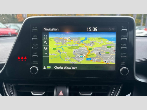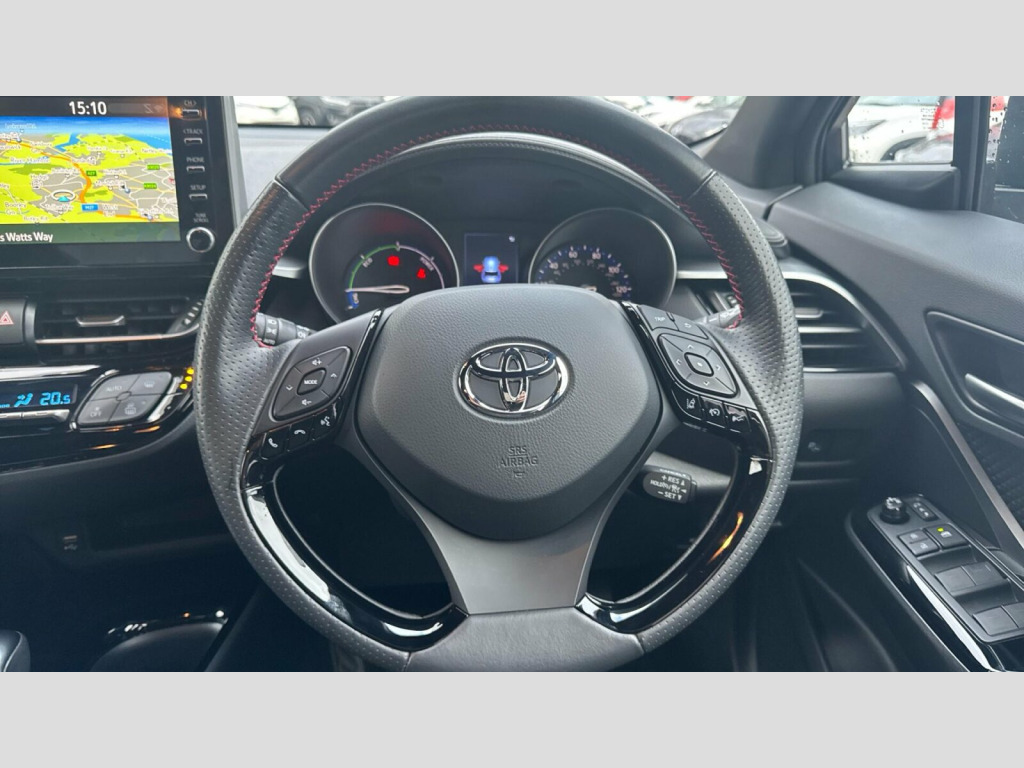 The highlights of this C-HR demonstrate its superior value compared to other vehicles in its class. Its impressive fuel economy of 58 mpg means fewer trips to the petrol station, while its low CO2 emissions contribute to a more environmentally friendly drive. Furthermore, its low insurance group rating makes it an economical choice for everyday motoring. These combined benefits make this Toyota C-HR a smart and appealing option for discerning drivers. 19in Alloy Wheels - 5-Double-Spoke - Black Machined-Face, 3-Spoke Perforated Leather Steering Wheel, 4.2in Colour TFT Screen for Multi-Information Display, ABS - Anti Lock Braking System, AM-FM Radio, Acoustic Vehicle Alert System - AVAS, Adaptive Cruise Control, Adaptive Front Light System - AFS, Adaptive LED Headlights, Adjustable Rear Headrests, Adjustable Speed Limiter - ASL, Adjustable Speed Limiter -ASL- Switch on Steering Wheel, Anti-Jam Protection on Power Windows, Audio and Telephone Switches on Steering Wheel, Auto Dimming Rear View Mirror, Auto Headlights, Auto Up and Down Function on Power Windows, Automatic Headlight Cut-Off, Automatic Headlight Levelling, Automatic High Beam, Black Bi-Tone Roof, Black Centre Console, Black Front Door Assist Grips, Black Front Spoiler, Black Lower Dashboard, Black Lower Driver Dashboard, Black Upper Dashboard, Black and Body-Coloured Rear Bumper, Blue Ambient Lighting on Front Cup Holders, Blue Ambient Lighting on Front Doors, Bluetooth Connectivity, Body Coloured Door Handles, Body Coloured Door Mirrors, Body-Coloured Front Bumper, Boot Door Release with Push Button, Boot Light, Child Safety Locks on Rear Doors, Chrome Interior Door Handles, Cool Silver Deco Line on Upper Dashboard, Dark Chrome Lower Front Grille, Digital Audio Broadcast - DAB, Driver and Front Passenger Personal Lights, Driver and Front Passenger Whiplash Lessening - Headrest, Driver and Passenger Seatback Pockets, Dual-Zone Automatic Air Conditioning, Electric Power Steering - EPS, Electric and Heated Door Mirrors, Electronic Parking Brake, Floor Mats, Follow Me Home Headlights, Front 12V Power Outlet, Front Cup Holders, Front Fog Lights - LED, Front LED Light Guide, Front Power Windows, Front and Centre Pillar Assist Grips, Glass-Breaking Alarm Sensors, Glovebox with Light, HAC - Hill Start Assist Control, Hard Tonneau Cover, Heated Driver and Front Passenger Seat, Hooks for Luggage Holding Belt, Humidifying Nanoe Air Purifier, Hybrid System Indicator, ISOFIX Seat Fixing - Rear, Illuminated Entry System, Immobiliser, Intrusion Alarm, LED Daytime Running Lights, LED High-Mounted Stop Light, LED Rear Brake Lights, LED Rear Combination Lights, Lane Departure Alert with Switches on Steering Wheel, Leather Gear Shift, Light on Driver Sun Visor, Light on Passenger Sun Visor, Manual Height Adjustable Front Passengers Seat, Manual Height Adjustable for Drivers Seat, Manual Tilt Steering Wheel, Manually Reclining Driver Seat, Manually Reclining Front Passengers Seat, Manually Sliding Drivers Seat, Manually Sliding Front Passenger Seat, Microphone on Front Personal Light, Mirror on Driver Sun Visor, Mirror on Passenger Sun Visor, Motion Sensor Alarm, Multimedia Switches on Steering Wheel, Noise Reduction Layer on Front Windows and Windscreen, Parking Pack, Passenger Airbag On-Off Switch, Pollen Air Filter, Power Adjustable Lumbar Support on Driver Seat, Power Door Locks, Power Passenger Window Lock, Pre-Collision Warning System with Pedestrian Detection, Privacy Glass, Rear Headrests x3, Rear Power Windows, Rear Seats 60-40 Split Folding, Rear Sequential Indicators, Rear Spoiler, Rear Tailgate, Rear Window Defogger, Rear Window Wiper, Remote Door Locking, Reversing Camera, Road Sign Assist, Seat Belt - Pre-Tensioners and Force Limiters, Seat Belt Reminder - Front and Rear, Seats - Front Sport, Shark Fin Antenna, Shopping Bag Hooks, Simple Intelligent Park Assist, Slow Opening Lower Glovebox, Smart Entry and Push-Button Start, Smartphone Integration - Apple Car Play and Android Auto, Speakers x6, Steering Wheel - Manual Telescopic Adjustment, Supplemental Restraint System - SRS - Airbags - 5 Airbags, TPMS - Tyre Pressure Monitoring System, Tech Pack, Toyota Touch 2 Multimedia System with 8in Display, Toyota Touch 2 with Go Navigation System, Tyre Repair Kit, USB Connector, UV-Filter on Drivers and Front Passenger Windows, UV-Filter on Rear Windows, VSC - Vehicle Stability Control, Voice Recognition, Voice Recognition Switch on Steering Wheel, Wi-Fi Connectivity