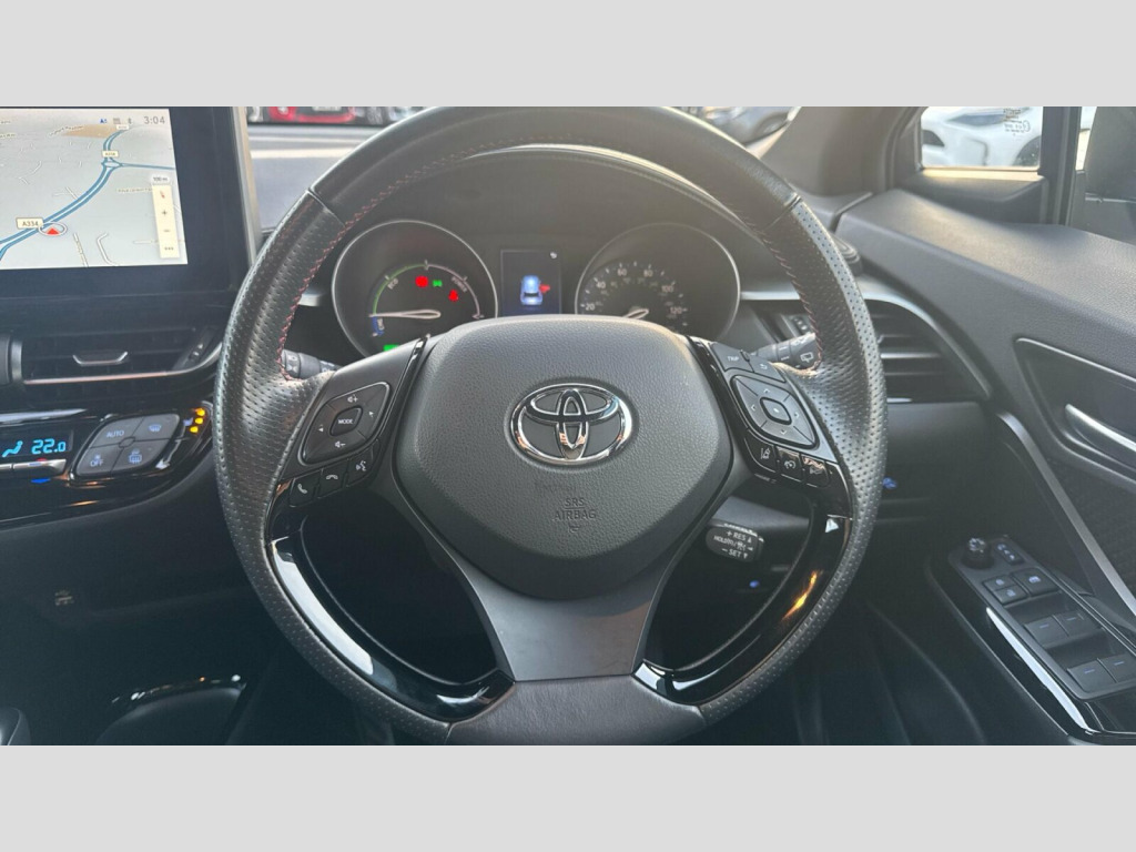 The adaptive LED headlights ensure excellent visibility, while the inclusion of the Parking Pack further simplifies manoeuvring in any situation. This C-HR GR SPORT is designed to be economical to run, highlighted by its low CO2 emissions and a low insurance group, making it a sensible choice compared to similar vehicles. Its combination of stylish design, hybrid efficiency, and advanced features makes it a compelling option for those seeking a modern and practical car. 19in Alloy Wheels - 5-Double-Spoke - Black Machined-Face, 3-Spoke Perforated Leather Steering Wheel, 4.2in Colour TFT Screen for Multi-Information Display, 8in HD Toyota Smart Connect Multimedia System, ABS - Anti Lock Braking System, AM-FM Radio, Acoustic Vehicle Alert System - AVAS, Adaptive Cruise Control, Adaptive Front Light System - AFS, Adaptive LED Headlights, Adjustable Rear Headrests, Adjustable Speed Limiter - ASL, Adjustable Speed Limiter -ASL- Switch on Steering Wheel, Anti-Jam Protection on Power Windows, Audio and Telephone Switches on Steering Wheel, Auto Dimming Rear View Mirror, Auto Headlights, Auto Up and Down Function on Power Windows, Automatic Headlight Cut-Off, Automatic Headlight Levelling, Automatic High Beam, Black Bi-Tone Roof, Black Centre Console, Black Front Door Assist Grips, Black Front Spoiler, Black Lower Dashboard, Black Lower Driver Dashboard, Black Upper Dashboard, Black and Body-Coloured Rear Bumper, Blue Ambient Lighting on Front Cup Holders, Blue Ambient Lighting on Front Doors, Bluetooth Connectivity, Body Coloured Door Handles, Body Coloured Door Mirrors, Body-Coloured Front Bumper, Boot Door Release with Push Button, Boot Light, Child Safety Locks on Rear Doors, Chrome Interior Door Handles, Cool Silver Deco Line on Upper Dashboard, Dark Chrome Lower Front Grille, Digital Audio Broadcast - DAB, Driver and Front Passenger Personal Lights, Driver and Front Passenger Whiplash Lessening - Headrest, Driver and Passenger Seatback Pockets, Dual-Zone Automatic Air Conditioning, Electric Power Steering - EPS, Electric and Heated Door Mirrors, Electronic Parking Brake, Floor Mats, Follow Me Home Headlights, Front 12V Power Outlet, Front Cup Holders, Front Fog Lights - LED, Front LED Light Guide, Front Power Windows, Front and Centre Pillar Assist Grips, Glass-Breaking Alarm Sensors, Glovebox with Light, HAC - Hill Start Assist Control, Hard Tonneau Cover, Heated Driver and Front Passenger Seat, Hooks for Luggage Holding Belt, Humidifying Nanoe Air Purifier, Hybrid System Indicator, ISOFIX Seat Fixing - Rear, Illuminated Entry System, Immobiliser, Intrusion Alarm, LED Daytime Running Lights, LED High-Mounted Stop Light, LED Rear Brake Lights, LED Rear Combination Lights, Lane Departure Alert with Switches on Steering Wheel, Leather Gear Shift, Light on Driver Sun Visor, Light on Passenger Sun Visor, Manual Height Adjustable Front Passengers Seat, Manual Height Adjustable for Drivers Seat, Manual Tilt Steering Wheel, Manually Reclining Driver Seat, Manually Reclining Front Passengers Seat, Manually Sliding Drivers Seat, Manually Sliding Front Passenger Seat, Microphone on Front Personal Light, Mirror on Driver Sun Visor, Mirror on Passenger Sun Visor, Motion Sensor Alarm, Multimedia Switches on Steering Wheel, Noise Reduction Layer on Front Windows and Windscreen, Parking Pack, Passenger Airbag On-Off Switch, Pollen Air Filter, Power Adjustable Lumbar Support on Driver Seat, Power Door Locks, Power Passenger Window Lock, Pre-Collision Warning System with Pedestrian Detection, Privacy Glass, Rear Headrests x3, Rear Power Windows, Rear Seats 60-40 Split Folding, Rear Sequential Indicators, Rear Spoiler, Rear Tailgate, Rear Window Defogger, Rear Window Wiper, Remote Door Locking, Reversing Camera, Road Sign Assist, Seat Belt - Pre-Tensioners and Force Limiters, Seat Belt Reminder - Front and Rear, Seats - Front Sport, Shark Fin Antenna, Shopping Bag Hooks, Simple Intelligent Park Assist, Slow Opening Lower Glovebox, Smart Entry and Push-Button Start, Speakers x6, Steering Wheel - Manual Telescopic Adjustment, Supplemental Restraint System - SRS - Airbags - 5 Airbags, TPMS - Tyre Pressure Monitoring System, Tech Pack, Tyre Repair Kit, USB Connector, UV-Filter on Drivers and Front Passenger Windows, UV-Filter on Rear Windows, VSC - Vehicle Stability Control, Voice Recognition, Voice Recognition Switch on Steering Wheel, Wi-Fi Connectivity