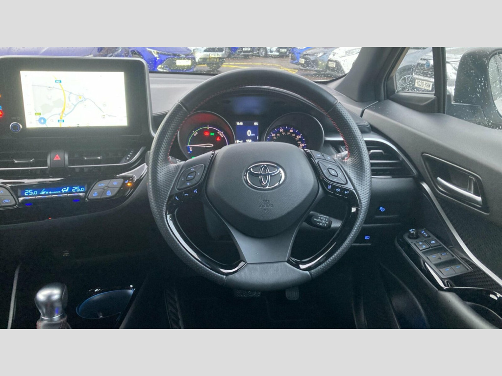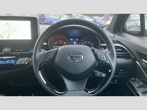This 2023 Toyota C-HR VVT-h GR SPORT is a Toyota manufacturer approved vehicle with a full dealership service history, having had its last service on 19 November 2025 at 21,959 miles, and boasts a single owner from new. This Euro 6 compliant model features a 2.0L petrol hybrid engine and comes with a 12 month warranty for your peace of mind. Inside, you'll find the luxurious Alcantara Leather and an 8in HD Toyota Smart Connect Multimedia System that includes wireless phone charging. The Tech Pack adds Blind Spot Assistance, keyless entry, and front and rear parking sensors, while Adaptive Cruise Control and heated front seats further enhance the driving experience.