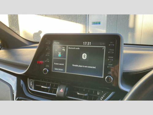 This 2022 Toyota C-HR VVT-h Icon is a Toyota manufacturer approved vehicle, offering peace of mind. It features a 1.8L Petrol Hybrid engine and meets Euro 6 emission standards. Inside, you'll find a suite of modern conveniences including smartphone integration with Apple CarPlay and Android Auto, Bluetooth connectivity for seamless calls and music streaming, and a reversing camera to aid with parking. The Icon trim also benefits from automatic LED reflector headlights that switch on when needed, enhancing visibility and convenience.
