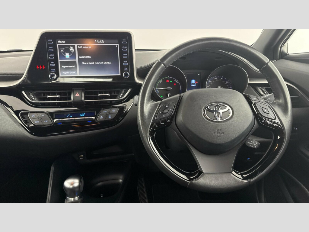 This C-HR Icon offers excellent running costs, with a highlight fuel economy of 58 mpg. Its low CO2 emissions and low insurance group rating indicate that it is a more economical choice compared to similar vehicles. This combination of efficiency, advanced features, and Toyota's renowned reliability makes this C-HR a compelling option. Fabric - Black with Light Grey Stitching, 17in Alloy Wheels - 5 Double Spoke - Silver, 3-Spoke Nappa Leather Steering Wheel, 4.2in Colour TFT Screen for Multi-Information Display, ABS - Anti Lock Braking System, AM-FM Radio, Acoustic Vehicle Alert System - AVAS, Adaptive Cruise Control, Adjustable Rear Headrests, Adjustable Speed Limiter - ASL, Adjustable Speed Limiter -ASL- Switch on Steering Wheel, Anti-Jam Protection on Power Windows, Audio and Telephone Switches on Steering Wheel, Auto Headlights, Auto Up and Down Function on Power Windows, Automatic Headlight Cut-Off, Automatic High Beam, Black Front Door Assist Grips, Black Lower Dashboard, Black Lower Driver Dashboard, Black Upper Dashboard, Black and Body-Coloured Rear Bumper, Bluetooth Connectivity, Body Coloured Door Handles, Body Coloured Door Mirrors, Body Coloured Front Spoiler, Body-Coloured Front Bumper, Boot Door Release with Push Button, Boot Light, Child Safety Locks on Rear Doors, Chrome Interior Door Handles, Digital Audio Broadcast - DAB, Driver and Front Passenger Personal Lights, Driver and Front Passenger Whiplash Lessening - Headrest, Dual-Zone Automatic Air Conditioning, Electric Power Steering - EPS, Electric and Heated Door Mirrors, Electronic Parking Brake, Floor Mats, Follow Me Home Headlights, Front 12V Power Outlet, Front Cup Holders, Front Fog Lights, Front LED Light Guide, Front Power Windows, Front and Centre Pillar Assist Grips, Glass-Breaking Alarm Sensors, Glovebox with Light, Grey Deco Line on Upper Dashboard, HAC - Hill Start Assist Control, Hard Tonneau Cover, Honeycomb Lower Front Grille, Hooks for Luggage Holding Belt, Humidifying Nanoe Air Purifier, Hybrid System Indicator, ISOFIX Seat Fixing - Rear, Illuminated Entry System, Immobiliser, Intrusion Alarm, LED Daytime Running Lights, LED High-Mounted Stop Light, LED Rear Brake Lights, LED Rear Combination Lights, LED Reflector Headlights, Lane Departure Alert with Switches on Steering Wheel, Leather Gear Shift, Light on Driver Sun Visor, Light on Passenger Sun Visor, Manual Headlight Levelling, Manual Height Adjustable for Drivers Seat, Manual Tilt Steering Wheel, Manually Adjustable Lumbar Support on Driver Seat, Manually Reclining Driver Seat, Manually Reclining Front Passengers Seat, Manually Retractable Door Mirrors, Manually Sliding Drivers Seat, Manually Sliding Front Passenger Seat, Matte Black Centre Console, Microphone on Front Personal Light, Mirror on Driver Sun Visor, Mirror on Passenger Sun Visor, Motion Sensor Alarm, Multimedia Switches on Steering Wheel, Noise Reduction Layer on Front Windows and Windscreen, Passenger Airbag On-Off Switch, Pollen Air Filter, Power Door Locks, Power Passenger Window Lock, Pre-Collision Warning System with Pedestrian Detection, Rear Headrests x3, Rear Power Windows, Rear Seats 60-40 Split Folding, Rear Spoiler, Rear Tailgate, Rear Window Defogger, Rear Window Wiper, Remote Door Locking, Reversing Camera, Road Sign Assist, Seat Belt - Pre-Tensioners and Force Limiters, Seat Belt Reminder - Front and Rear, Seats - Front Sport, Shark Fin Antenna, Shopping Bag Hooks, Slow Opening Lower Glovebox, Smartphone Integration - Apple Car Play and Android Auto, Speakers x6, Steering Wheel - Manual Telescopic Adjustment, Supplemental Restraint System - SRS - Airbags - 5 Airbags, TPMS - Tyre Pressure Monitoring System, Toyota Touch 2 Multimedia System with 8in Display, Tyre Repair Kit, USB Connector, UV-Filter on Drivers and Front Passenger Windows, UV-Filter on Rear Windows, VSC - Vehicle Stability Control, Voice Recognition, Voice Recognition Switch on Steering Wheel, Wi-Fi Connectivity