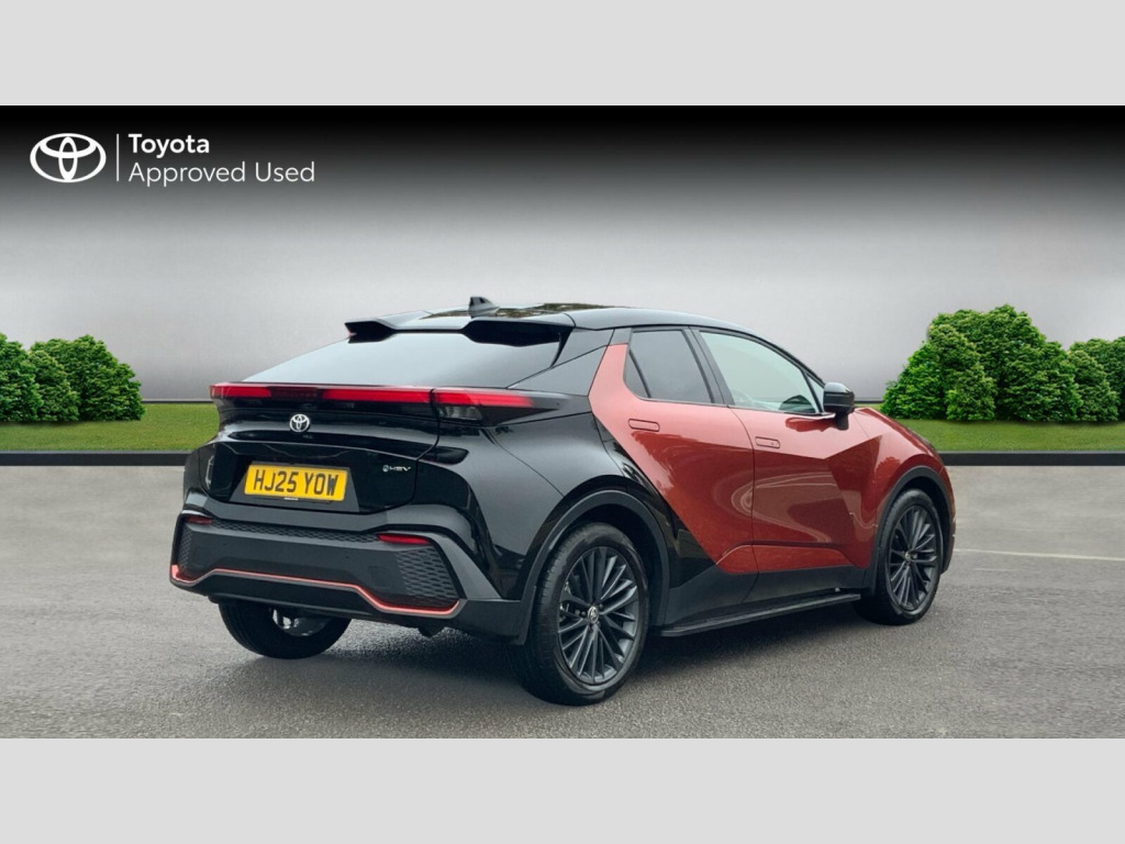 This 2025 Toyota C-HR Orange Edition is a Toyota manufacturer approved ex-demonstration vehicle, offering peace of mind with 25 months of warranty remaining and an MOT valid until January 2028. This stylish Euro 6 compliant hybrid is powered by an efficient 1.8L petrol hybrid engine. Inside, you'll find a host of convenient features including a Panoramic View Monitor with a 360 degree camera for effortless parking assistance, Smart Entry with keyless access, and Dual-Zone Automatic Air Conditioning for personalised comfort. The front sports seats, with driver memory function, and the integrated Wireless Mobile Phone Charger further enhance the driving experience.
