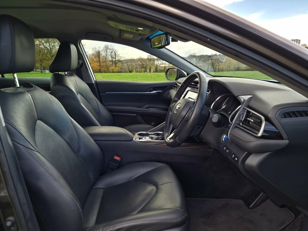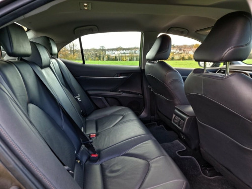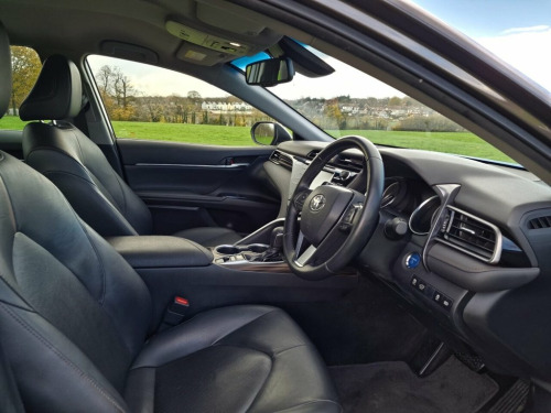 This 2019 Toyota Camry VVT-h Excel is a superb example, having been cherished by only one owner since new. This Euro 6 compliant model boasts a smooth and efficient 2.5 litre petrol hybrid engine, offering a refined driving experience. Keyless entry and push button start make getting going effortless, while automatic headlights ensure you always have optimal visibility. For added convenience and safety on longer journeys, it features adaptive cruise control, allowing you to maintain a set distance from the vehicle ahead. The technology within this Camry Excel trim further enhances your drive. Stay connected safely with the integrated Bluetooth hands free system, and benefit from the blind spot monitor which alerts you to vehicles in your blind spots. These features, combined with the car's excellent condition and single owner history, demonstrate a level of care and specification that sets it apart from other vehicles in its class. 18in Alloy Wheels - 20 Spoke, 3-Spoke Leather Steering Wheel, 6 Speakers, 60-40 Split-Folding - 2nd Row - Rear Sea, 7in TFT Multi-Information Display, 7in Touch Screen, Adaptive Cruise Control, Adaptive Cruise Control Switch on Steeri, Ambient Lighting on Front Doors, Ambient Lighting on Rear Doors, Anti Lock Braking System - ABS with Elec, Anti-Jam Protection on Power Windows, Audio Switches on Steering Wheel, Auto Dimming Rear View Mirror, Automatic Headlight Levelling, Automatic High Beam, Automatically Retractable Door Mirrors, Aux-In Connector, Black Centre Console, Blind Spot Monitor - BSM, Bluetooth Hands Free System, Body Coloured Door Handles, Body Coloured Door Mirrors, Boot Light,