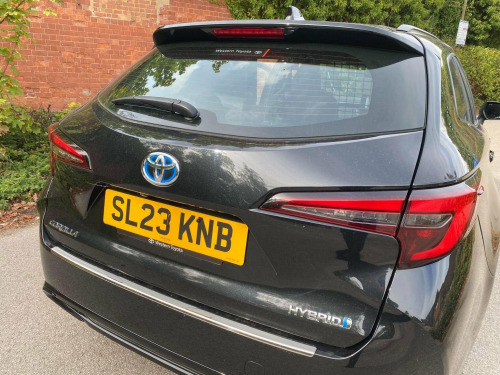 This 2023 Toyota Corolla is a superb example, having had only one owner since new. This 1.8 VVT-h CVT Euro 6 (s/s) 5dr model boasts a 1.8L Petrol Hybrid Engine, delivering an impressive 138 bhp. Inside, youll find Dual-Zone Automatic Air Conditioning for personalised comfort, and seamless Bluetooth Connectivity for calls and audio streaming. Stay connected and entertained with Smartphone Integration, featuring both Apple CarPlay and Android Auto, all managed through an 8in Multimedia Display with DAB radio. The advanced Toyota Safety Sense 3 suite, including Adaptive Cruise Control, provides peace of mind on every journey. The generous cargo volume of 1606 litres highlights how this Corolla offers exceptional practicality for all your needs. The combination of its hybrid powertrain and Euro 6 emissions classification indicates a more efficient and environmentally conscious driving experience compared to many other vehicles. This well maintained, single owner vehicle represents a fantastic blend of technology, comfort, and efficiency.