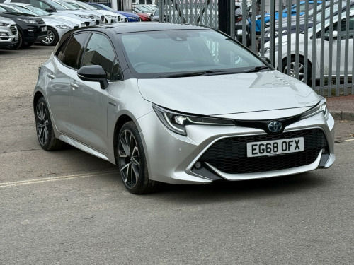 This 2019 Toyota Corolla VVT-h Excel is a superb example of a well maintained hybrid vehicle. It boasts a 1.8 litre petrol hybrid engine, meeting Euro 6 emissions standards. The Excel trim level offers a refined driving experience, enhanced by features such as Toyota Safety Sense, which includes adaptive cruise control for effortless long journeys. You'll also benefit from front and rear parking sensors to aid manoeuvring, automatic headlights that adjust to lighting conditions, and heated seats for added comfort during colder months.This particular Corolla stands out with its low CO2 emissions, making it an environmentally conscious choice. Its large boot space provides ample room for shopping or luggage, demonstrating its practicality for everyday use. Furthermore, its placement in a low insurance group suggests that running costs will be more affordable compared to similar vehicles. These aspects combine to make this Toyota Corolla a compelling option for those seeking efficiency, comfort, and value.. 18in Alloy Wheels, 2-Ring Combimeters with Colour TFT Screen, 7in Colour TFT Multi-Information Display, 8in Touchscreen with MM17 Multimedia System, AM-FM Radio, Adaptive Cruise Control, Anti Lock Braking System - ABS with Electronic Brake-Force Distribution - EBD, Auto Folding - Door Mirrors, Auto Headlights, Auto Wipers, Automatic High Beam, Automatic Rear View Mirror, BA - Brake Assist, Bi-LED Headlights with LED Lightguide, Bluetooth Connectivity, DAB Digital Radio, Dual-Zone Automatic Air Conditioning, E-Call, Electric Power Steering - EPS, Electrochromatic Rear-View Mirror, Front Fog Lights - LED, Front Passenger Airbag On-Off Switch, Front and Rear Parking Sensors, HAC - Hill Start Assist Control, Heated Seats, ISOFIX Fixing Points, Intelligent Park Assist, LED Daytime Running Lights, LED Rear Combinations Lights with LED Lightguide, Leather Steering Wheel and Gear Knob, One-Touch Power Windows, Parking Pack, Power Lumbar Support, Privacy Glass - Rear, Push Button Start, Reversing Camera, Seat Belt - Pre-Tensioners and Force Limiters, Seat Belt Reminder - Front and Rear, Shark Fin Antenna, Smart Entry System, Speakers x6, Supplemental Restraint System - SRS - Airbags - 7 Airbags, Toyota Safety Sense, Toyota Touch 2 with Go Navigation, Traction Control - TRC, USB and Aux In, VSC - Vehicle Stability Control, Whiplash Injury Lessening - WIL - Seats.