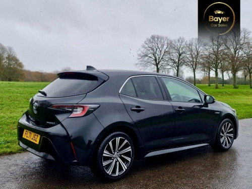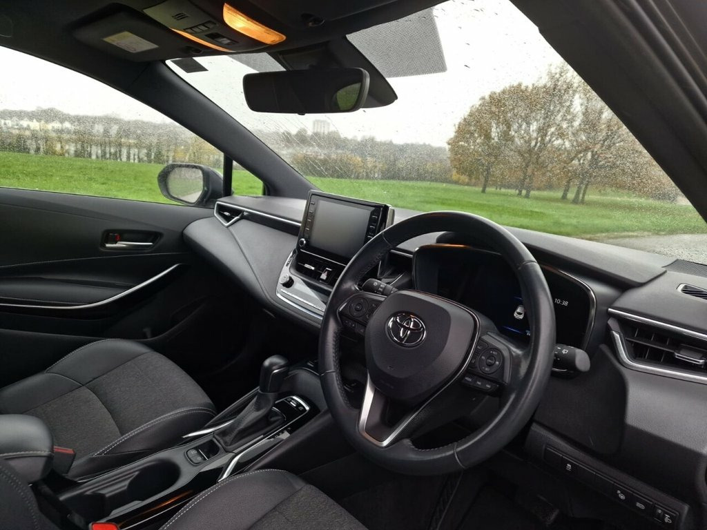 This 2021 Toyota Corolla VVT-h Design is a superb example, having been owned by just one keeper since new. This Euro 6 compliant model boasts a 1.8L Petrol Hybrid engine, offering an impressive fuel economy of 58 mpg. It comes equipped with a suite of intelligent features designed for your convenience and safety, including Adaptive Cruise Control with Speed Limiter, a Smart Entry System for keyless access, and automatic headlights that adjust to ambient light conditions. Parking is made easier with the integrated reversing camera, and you can stay connected on the go thanks to the Bluetooth connectivity. The Design trim level ensures you benefit from these practical and modern additions, making this Corolla stand out from other vehicles in its class. Its low insurance group rating is another significant advantage, suggesting lower running costs for owners. This well maintained, low owner vehicle represents a sensible choice for those seeking reliability, efficiency, and a comfortable driving experience. 17in Alloy Wheels - Black Machined, 17in Alloy Wheels - Machined Face, 2-Ring Combimeters with Colour TFT Scree, 8in Touchscreen with MM19 Multimedia Sys, Acoustic Vehicle Alert System - AVAS, Adaptive Cruise Control with Speed Limit, Alarm with Motion Sensor and Immobiliser, AM-FM Radio, Anti Lock Braking System - ABS with Elec, Auto Dimming Rear View Mirror, Auto Folding - Door Mirrors, Auto Headlights, Automatic High Beam, BA - Brake Assist, Bluetooth Connectivity, DAB Digital Radio, Dual-Zone Automatic Air Conditioning, E-Call, Eclipse Black, Electric Power Steering - EPS, Electronic Parking Brake, EV Drive Indicator, Fabric with Partial Synthetic Leather - , Front 12V Power Outlet, Fron