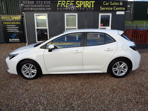 A Great Value 1 Owner Corolla with Full Toyota History from new, Specifcation includes Reverse Parking Camera, Apple/Android Car Play, Bluetooth Phone, Bluetooth Audio, DAB Radio, Heated Seats, Digital Climate Control, Cruise Control, Automatic Dip Lights, Front & Rear Armrests, Multifunction Steering Wheel, Electric Power Fold Mirrors, Electric Windows, Remote Central Locking…………………. See Below For Further Specification................. The additional specification details below are provided by Autotrader not by Free Spirit. They are a general guide for the most recent model of this vehicle but may not be precisely correct for this actual vehicle so please don’t rely on them. We will happily assist you in carefully checking that this vehicle’s specification is in line with your requirements.Free Spirit Automotive have been trading since 2004. We fund cars with BMW Alphera Finance & have access to multiple lenders offering different lending criteria to accommodate all customer credit scores. All vehicles are fully Health Checked in our purpose-built workshop prior to delivery & are Serviced & MOT’d as required. Every vehicle comes with a Warranty as standard. We stock between 70-100 cars and have more vehicles stocked than advertised. Part Exchange welcome. We have sold & delivered over 10,000 cars since we opened in 2004.. 10.5in Fully Touchscreen Multimedia System, AM-FM Radio, Bluetooth Connectivity, Connected Car Functionality, DAB Digital Radio, E-Call, Front 12V Power Outlet, MM21 T2 Smart Connect Nav, MyToyota App, Shark Fin Antenna, Smartphone Integration - Apple Car Play and Android Auto, Speakers x6, USB and Aux In, Wireless Charger, Adaptive Cruise Control with Speed Limiter, Reversing Camera, 16in Alloy Wheels - Silver Metallic, Heated and Power Adjustable Door Mirrors, One-Touch Power Windows, Scuff Plates, Tyre Repair Kit, Auto Headlights, Automatic High Beam, Front Fog Lights - LED, Headlights - LED, LED Daytime Running Lights, 12.3in Full Digital Combimeter, Dual-Zone Automatic Air Conditioning, Heated Seats, Leather Steering Wheel and Gear Knob, Pollen Filter, Power Lumbar Support, Push Button Start, Steering Column - Tilt and Telescopic, Steering Wheel Switches, Electric Power Steering - EPS, EV Drive Indicator, Acoustic Vehicle Alert System - AVAS, Alarm with Motion Sensor and Immobiliser, Anti Lock Braking System - ABS with Electronic Brake-Force Distribution - EBD, BA - Brake Assist, Electronic Parking Brake, Front Cross Traffic Alert - FCTA, Front Passenger Airbag On-Off Switch, HAC - Hill Start Assist Control, ISOFIX Fixing Points, Rear Seat Reminder System, Rear Window Wiper, Seat Belt - Pre-Tensioners and Force Limiters, Seat Belt Reminder - Front and Rear, Seatbelts - Adjustable Front Driver Seat Belt Extender, Smart Entry System Enhancement, Supplemental Restraint System - SRS - Airbags - 7 Airbags, Toyota Safety Sense, Traction Control - TRC, VSC - Vehicle Stability Control, Wireless Remote Locking with Deadlocks, Fabric - Black, Pure White.