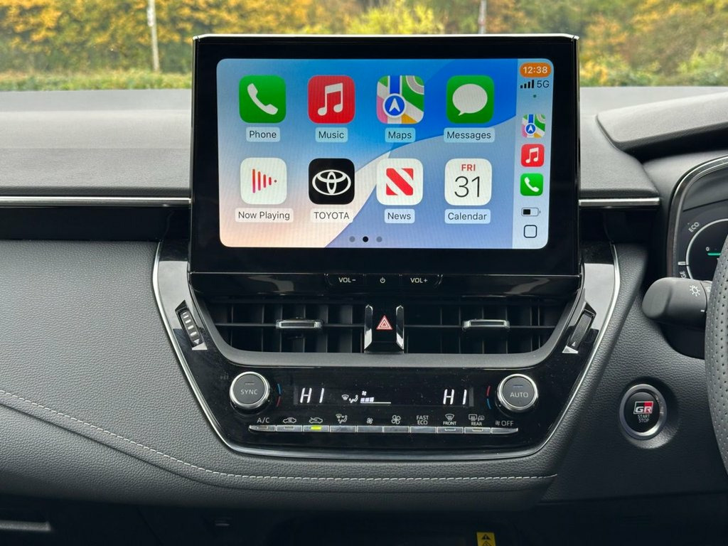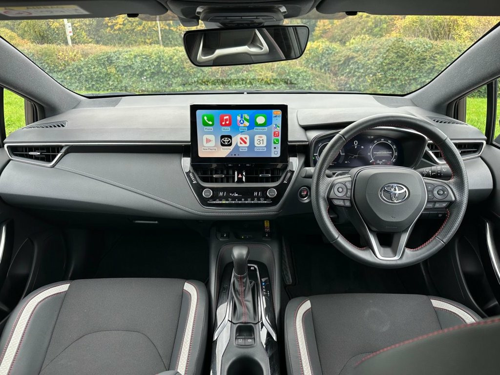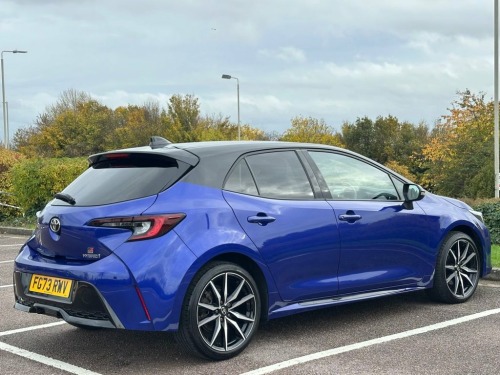For sale is a 2023 Toyota Corolla 2.0 VVT-h GR Sport Hatchback 5dr Petrol Hybrid CVT Euro 6 finished in stylish Juniper Blue, presented in mint condition throughout and supplied with 2 keys. Just been serviced by Toyota in November 2025, This superb hybrid hatchback is ULEZ compliant and comes with the peace of mind of a Toyota warranty until 2026. Combining sporty GR Sport styling with Toyota's renowned hybrid efficiency, it delivers a smooth, responsive drive with excellent fuel economy. High specification includes Apple CarPlay, reverse camera, satellite navigation, Adaptive cruise control, Bluetooth phone and audio connectivity, dual-zone climate control, DAB radio, and a premium quality GR Sport interior with sports seats and trim. A fantastic, high-specification example with low ownership costs and manufacturer warranty—viewing is highly recommended. Juniper Blue, 10.5in Fully Touchscreen Multimedia Syst, 12.3in Full Digital Combimeter, 18in Alloy Wheels - Dark Grey - Machined, AM-FM Radio, Acoustic Vehicle Alert System - AVAS, Adaptive Cruise Control with Speed Limit, Alarm with Motion Sensor and Immobiliser, Anti Lock Braking System - ABS with Elec, Auto Dimming Rear View Mirror, Auto Folding - Door Mirrors, Auto Headlights, Automatic High Beam, BA - Brake Assist, Bluetooth Connectivity, Connected Car Functionality, DAB Digital Radio, Dual-Zone Automatic Air Conditioning, E-Call, EV Drive Indicator, Electric Power Steering - EPS, Electronic Parking Brake, Front 12V Power Outlet, Front Cross Traffic Alert - FCTA, Front Fog Lights - LED,