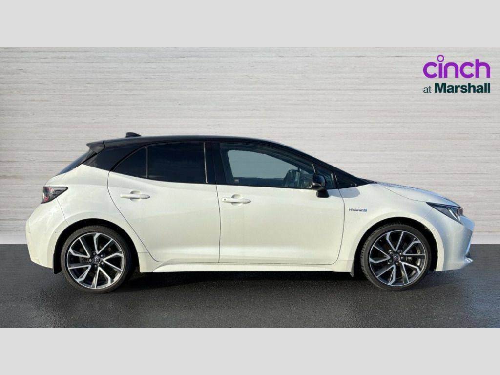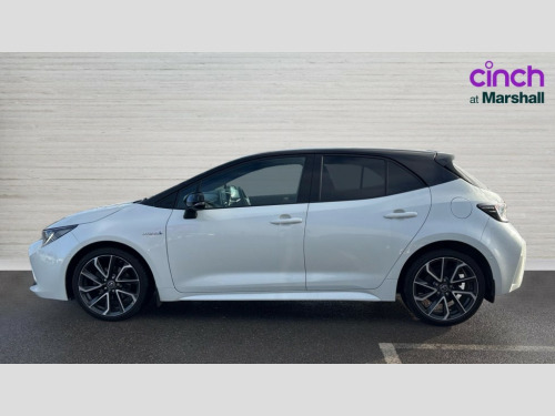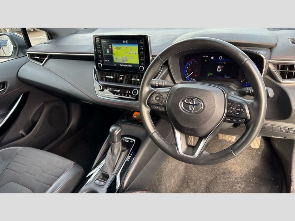 Toyota Corolla 1.8 VVT-i Hybrid Excel 5dr CVT Adaptive cruise control, Bluetooth telephone connectivity, E-call, Electrically assisted power steering, Front parking sensor, Intelligent park assist, Push button start, Rear parking sensor, Reversing camera, Voice activation, Vehicle Stability Control (VSC), 2 ring combimeters with 7" colour TFT screen, 6 speakers, 8" multimedia and back monitor, AM/FM radio, DAB Digital radio, Toyota touch 2 with go navigation system, USB/AUX connectivity, Anti-jam protection on power windows, Auto dimming inside rear view mirror, Auto high beam, Auto up and down function on all power windows, Automatic folding mirrors, Automatic headlights, Automatic rear view mirror, Automatic wipers, Bi-LED headlights with LED lightguide, Body coloured bumpers, LED daytime running lights, LED fog lights, LED rear combi lights with LED lightguide, Power front windows, Power rear windows, Privacy glass, Rain sensor, Rear window wiper, Shark fin antenna, 3 rear headrests, Alcantara/partial leather upholstery, Clean air filter, Dual zone automatic air conditioning, Front head restraints, Heated seats, Interior illumination, ISOFIX seat fixing (2 fixings on rear outer seats), Leather steering wheel and gear knob, Pollen filter, Power lumbar support, Tilt/telescopic steering column, Whiplash Injury Lessening (WIL) feature (active headrest) for seats, Parking pack - Corolla, Toyota safety sense 2 - Corolla, 3x3 point rear seatbelts, Anti lock braking system + Electronic brake force distribution, Brake assist function, Electronic parking brake, Front passenger airbag on/off switch, Front seatbelt reminder, HAC - Hill start assist control, Rear seat belt reminder, Seatbelt pretensioners and force limiters, Supplemental restraint system (SRS) airbags - 7 airbags including driver, front passenger, curtain, side and knee airbags, Traction control, Tyre pressure warning system, Alarm/immobiliser, Smart entry, Tyre repair kit