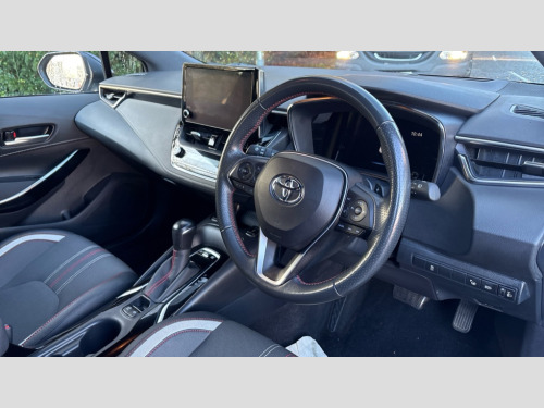 Toyota Corolla 2.0 VVT-i Hybrid GR Sport 5dr CVT 7" Multi information display screen, Bluetooth telephone connectivity, Connected car functionality upgrade, tracker, remote status and e-care, Dynamic radar cruise control (with RSA) including switch on steering wheel, E-call, Electrically assisted power steering, EV drive indicator, Head up Display, Intelligent park assist, Lane Departure Alert (LDA) switch on steering wheel, Memory on adjustable speed limiter, Push button start, Reversing camera, Smartphone integration with Apple CarPlay and Android auto, Gasoline particulate filter, Vehicle Stability Control (VSC), 6 speakers, 8" Touchscreen with MM19 Multimedia system and voice recognition, AM/FM radio, DAB Digital radio, Toyota touch 2 with go navigation system, USB and Aux in connectors + 12V front outlet, Anti-jam protection on power windows, Auto dimming inside rear view mirror, Auto up and down function on all power windows, Automatic folding mirrors, Automatic headlights with high beam assist, Black toyota logo in front, Black window frames, Body colour rear spoiler, Body coloured bumpers, Body coloured door mirrors, Body coloured outside door handles, Follow me home headlights, LED daytime running lights, LED front fog lights, LED Headlights, LED High mounted stop light, LED rear combi lights with LED lightguide, Piano black surround on lower front grille with dark chrome mesh effect, Power adjustable heated door mirrors, Power front windows, Power rear windows, Privacy glass, Rain sensing wipers, Rear bumper with satin chrome plated inserts, Rear side wing doors, Rear window defogger, Rear window wiper, Reverse tilting door mirrors, Shark fin antenna, Time adjustment on intermittent wiper, Turning signal integrated indicators in door mirrors, Unique lower skirt, Unique side rocker with black insert, UV-filter on driver and passenger windows, 3 rear headrests, 3 seat bench in 2nd row, 3 spoke leather steering wheel + gear knob, 60/40 split folding rear seat, Adjustable speed limiter switch on steering wheel, Alcantara/partial leather upholstery, Audio, multimedia and telephone switches on steering wheel, Boot light, Centre room light, Clean air filter, Driver and front passenger personal light, Driver and passenger assist grip, Driver and passenger seatback pockets, Driver and passenger sun visor with mirror and light, Dual zone automatic air conditioning with ECO mode switch, Fabric armrests, Front and rear cup and bottle holders, Front door pockets, Front head restraints, Front passenger seat, Heated driver and front passenger seats, Illuminated entry system in room lamp, ISOFIX seat fixing (2 fixings on rear outer seats), Leather gear shift with satin chrome on gear shift console, Manual height adjustable for driver and front passenger seat, Paddle shifts, Parcel shelf, Pollen filter, Power adjustable lumbar support on driver seat, Power window switches with satin chrome inserts, Rear armrest with 2 cupholders, Rear passenger coat hooks (2), Satin chrome inside door handles, Shopping bag hooks in luggage compartment, Sliding armrest on centre console box, Slow opening glovebox with lights, Sports seats, Tilt/telescopic steering column, Voice recognition switch on steering wheel, Whiplash Injury Lessening (WIL) feature (active headrest) for seats, Parking pack - Corolla, Toyota safety sense 2 pack - Corolla, 3x3 point rear seatbelts, Adjustable driver and front passenger seat belt extender to top anchor point, Anti lock braking system + Electronic brake force distribution, Brake assist function, Child locks on rear doors, Downhill Assist Control (DAC), Electronic parking brake, Emergency brake light signal (EBS), Front passenger airbag on/off switch, Front seatbelt reminder, HAC - Hill start assist control, Rear seat belt reminder, Seatbelt pretensioners and force limiters, Supplemental restraint system (SRS) 7 airbags - dual driver, dual side curtain, side impact and driver knee airbags, Traction control, Tyre pressure warning system, Acoustic vehicle alert system (AVAS), Alarm with motion sensor and immobilizer, Remote central locking + deadlocks, Smart entry, Satin chrome dash trim, Soft touch texture on upper dashboard, Space saver spare wheel, Unique wheel finish with red wheel cap