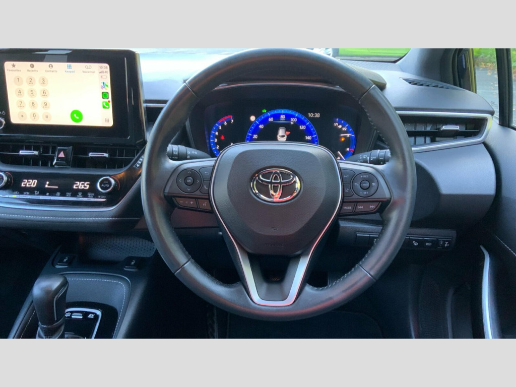 Experience effortless journeys with Adaptive Cruise Control, Automatic self parking and enjoy seamless connectivity through Smartphone Integration, supporting both Apple CarPlay and Android Auto. This Corolla also offers impressive practicality with its large boot space, making it ideal for everyday use and longer trips. Its fuel economy is outstanding, achieving up to 60 mpg, and its low CO2 emissions contribute to a lower insurance group, indicating it is more economical to run than many similar vehicles. 17in Alloy Wheels - Black - Machined, Fabric with Partial Synthetic Leather - Black, 10.5in Fully Touchscreen Multimedia System, 12.3in Full Digital Combimeter, 17in Alloy Wheels - Machine Faced, AM-FM Radio, Acoustic Vehicle Alert System - AVAS, Adaptive Cruise Control with Speed Limiter, Alarm with Motion Sensor and Immobiliser, Anti Lock Braking System - ABS with Electronic Brake-Force Distribution - EBD, Auto Dimming Rear View Mirror, Auto Folding - Door Mirrors, Auto Headlights, Automatic High Beam, BA - Brake Assist, Bluetooth Connectivity, Boot 12V Power Outlet, Connected Car Functionality, DAB Digital Radio, Dual-Zone Automatic Air Conditioning, E-Call, EV Drive Indicator, Electric Power Steering - EPS, Electronic Parking Brake, Front 12V Power Outlet, Front Cross Traffic Alert - FCTA, Front Fog Lights - LED, Front Passenger Airbag On-Off Switch, Front and Rear Parking Sensors, HAC - Hill Start Assist Control, Headlights - LED, Heated Seats, ISOFIX Fixing Points, Intelligent Park Assist, LED Daytime Running Lights, LED Rear Combinations Lights with LED Lightguide, Leather Steering Wheel and Gear Knob, Light Blue Ambient Lighting, MM21 T2 Smart Connect Nav, MyToyota App, One-Touch Power Windows, Pollen Filter, Power Lumbar Support, Privacy Glass - Rear, Push Button Start, Rain Sensing Wipers, Rear Seat Reminder System, Rear Window Wiper, Reversing Camera, Scuff Plates, Seat Belt - Pre-Tensioners and Force Limiters, Seat Belt Reminder - Front and Rear, Seatbelts - Adjustable Front Driver Seat Belt Extender, Shark Fin Antenna, Smart Entry System Enhancement, Smartphone Integration - Apple Car Play and Android Auto, Speakers x6, Steering Column - Tilt and Telescopic, Steering Wheel Switches, Supplemental Restraint System - SRS - Airbags - 7 Airbags, Toyota Safety Sense, Traction Control - TRC, Tyre Repair Kit, USB and Aux In, VSC - Vehicle Stability Control, Wireless Charger, Wireless Remote Locking with Deadlocks