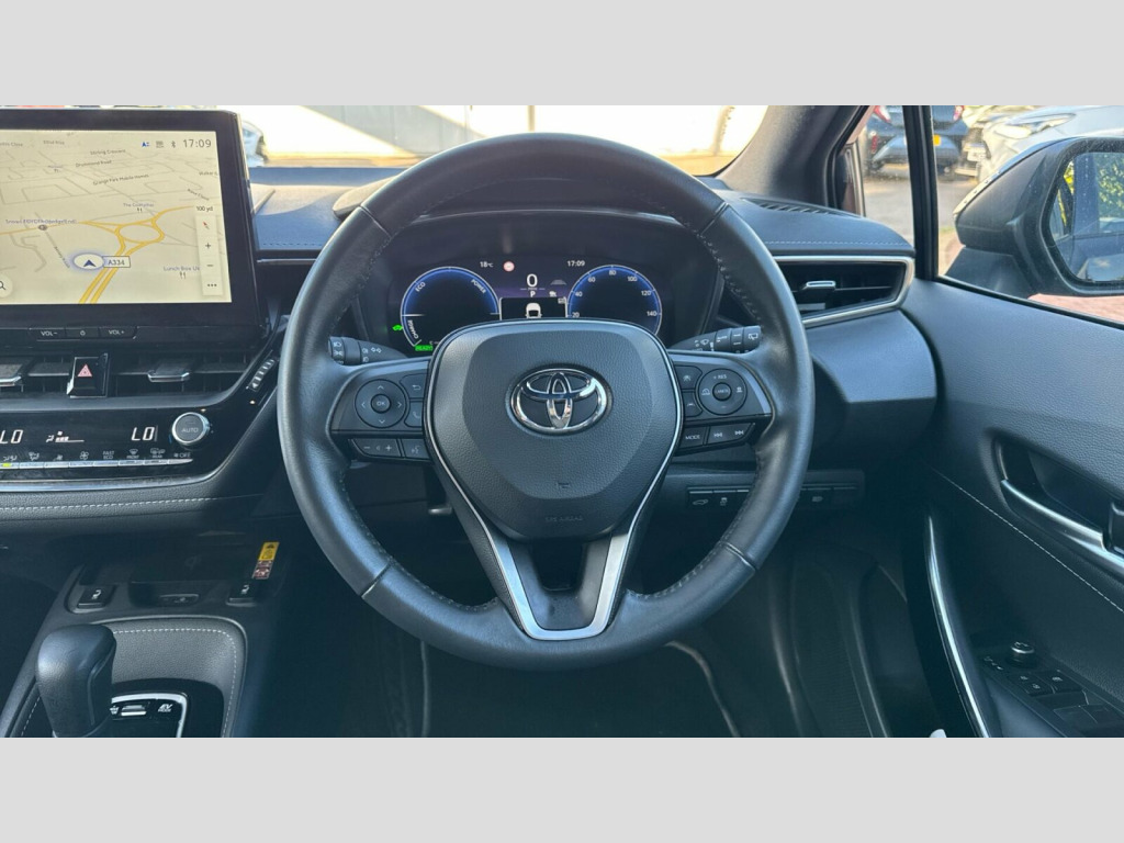 This 2023 Toyota Corolla VVT-h Excel offers exceptional value with its remaining 12 months of Toyota manufacturer approved warranty. With a mere 15,711 miles on the clock, this Euro 6 compliant hybrid is a testament to its low mileage for its age. The Excel trim level ensures a well equipped experience, featuring practical additions such as Blind Spot Monitoring with Safe Exit Assist, a convenient wireless charger, and a reversing camera for easier parking. Stay connected on the go with Bluetooth connectivity, and enjoy added comfort thanks to the heated seats.