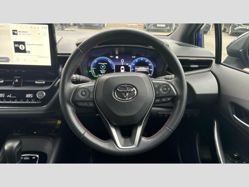 This 2023 Toyota Corolla VVT-h GR SPORT, with only one owner and a mere 14867 miles, boasts a full service history, with its last service completed on 24th June 2025 at 14865 miles. As a Toyota manufacturer approved vehicle, it comes with a 12 month warranty for your peace of mind. This Euro 6 compliant model features striking LED headlights, adaptive cruise control with a speed limiter, and dual zone automatic air conditioning for a comfortable driving experience. Stay connected and entertained with smartphone integration for Apple CarPlay and Android Auto, and easily navigate tight spaces with the helpful reversing camera.