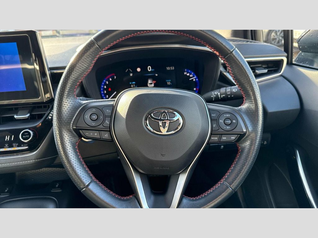 This 2022 Toyota Corolla VVT-h GR SPORT is a superb example, boasting very low mileage for its age at just 16,424 miles and having had only one owner from new. As a Toyota manufacturer approved vehicle, it offers peace of mind, featuring a responsive 1.8L petrol hybrid engine that meets Euro 6 emissions standards. The GR SPORT trim enhances its appeal, and you'll appreciate the comfort of heated seats and the convenience of dual-zone automatic air conditioning. Navigating tight spaces is made easier with front and rear parking sensors, complemented by a reversing camera.