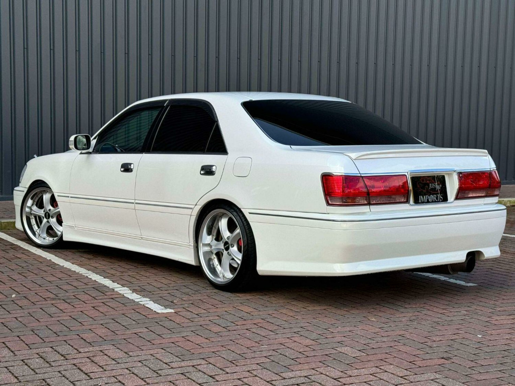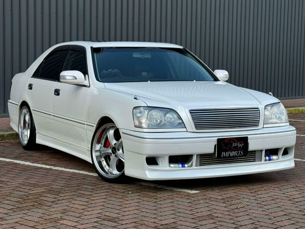 2000 Toyota Crown Saloon JZS171 1JZ-GTE Turbo, , Recently arrived into stock via our buying service is the superb Crown Athlete V Saloon. Very well specd with many rare modifications. Those following the market for these in Japan will be well aware these are now becoming very hard to obtain due to the noticeable global price increase for all 1JZ turbo vehicles. , Imported into the UK in late 2021 and less than 10k miles covered on UK roads since , , Genuine 158,500 kms (98,000 miles), Timing belt last replaced at (100,000kms), Factory 2.5 1JZ-GTE Turbo (Auto gearbox), Presented in factory pearl white, Rare optional extra electric sunroof, Grey interior and trim option, , Engine and Drivetrain:, , Greddy Front mount intercooler, Greddy radiator piping, Greddy transmission cooler, Greddy oil cooler and oil filter relocation, Greddy front strut brace, Blitz air suction intake, Blitz BOV, Aftermarket oil catch can, Near new Custom catback stainless steel exhaust system (factory Cat still retained), , Exterior:, , Very rare custom Evolution Aero kit including bumpers, side skirts and rear spoiler. Fits very well to the car and even retain the original chrome pin striping, DAD front grill, GRS184 Style door mirrors with side repeater, Genuine 19 3 piece split Amistad brights alloy wheels, Brake calipers finished in red, Factory wind deflectors, Factory privacy glass, , Suspension and handling:, , Blistine adjustable coilovers (Ride nice and smooth), TRD front anti roll bar, TRD rear anti roll bar, , Interior:, , Aftermarket premium steering wheel, DAD Vip table, Greddy Turbo Timer, HKS boost controller, Super cat GPS/Radar, HUD mph converter, Defi link controller, Defi link Boost gauge, Defi link Oil Temp gauge, Defi link Oil pressure gauge, Pioneer double din headunit with Fascia (with Bluetooth), Bellezza black leather seat covers, Junction produce headrests, Rear curtains, Full factory 5-piece mat set, Factory electric front seats, , Usual Crown factory refinements including electric folding mirrors, swing vents, climate control, A/C, central locking etc, , Comes with all original owners manuals, service book and brochures for modifications that have been carried out. Recently serviced, fitted with new spark plugs, leads and coil packs. Radiator, alternator and starter motor have also been changed with new items. Ultimately all common problems with 1JZ engines have been rectified so the next owner can enjoy stress free motoring. , Overall, in great condition throughout. There are a few very minor exterior imperfections (detailed pictures available) as you would expect from the age/mileage. Underneath is completely rust free in factory condition with no underseal to hide anything. Drives incredibly well, a great combination of both luxury and performance. These are becoming very desirable vehicles that will rocket up in value over the coming years. As mentioned, clean and genuine examples are becoming very difficult to source in Japan making this a great investment opportunity. We have seen a heavy price increase over the last year for all 1jz/2jz turbo vehicles, get one while you can, , Many more detailed pictures available including a full walk around video, , Delivery service available throughout the UK, please provide us your postcode for an instant quote (full payment required beforehand), , £360 road tax per year, , All our vehicles can be secured with a 10% deposit, , Genuine enquires only, please no dreamers/timewasters, contact 07973138080 or send us an email, , Viewing strictly by appointment only,