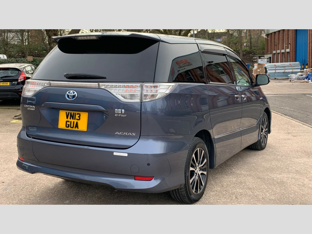 Toyota Estima Aeras, E Four Hybrid, 2013, Date of Reg 01.04.13, 2.4 Petrol Hybrid Engine, Automatic Gearbox, 7 Seats including driver, 4WD, Fresh Japanese Import, Passenger side electric sliding door, Front Fog Lights, Cruise Control, Rear Camera, MPH and rear fog conversion done, Fully serviced using Toyota parts, Tidy motor, Drives well, Comes with Documentation to verify the miles, ULEZ compatible, 2 Keys, £360 Annual Road Tax, Any Trial PX Welcome, 3 Months Warranty with Auto Select Warranties r conditioning, bluetooth connection, climate control, door mirrors electrically foldable, dvd player, keyless go, rain-sensing wipers, xenon headlamps, adjustable steering column, cruise control, esp, multi-function steering wheel, parking sensors, power steering, rear parking sensor, steering wheel rake adjustment, trip computer, abs, air bag, child locks, isofix child seat anchor points, passenger airbag, quick-clear screen, alarm, anti-theft system, central locking, immobiliser, keyless entry, privacy glass, remote central locking, electric front windows, electric mirrors, electric sliding doors, electric windows, rear electric windows, soft close automatic, windscreen heating, cd player, steering wheel audio controls, stereo, front armrest, front head restraints, height adjustable drivers seat, 7 seater, folding rear seats, rear armrest, rear headrests, seat-back tables, 2 zone climate control, push button start, alloy wheels, body coloured bumpers, colour coded body, front fog lights, led 3rd brake light, led daytime running lights, metallic paintwork, tyre repair kit, electric power sliding doors
