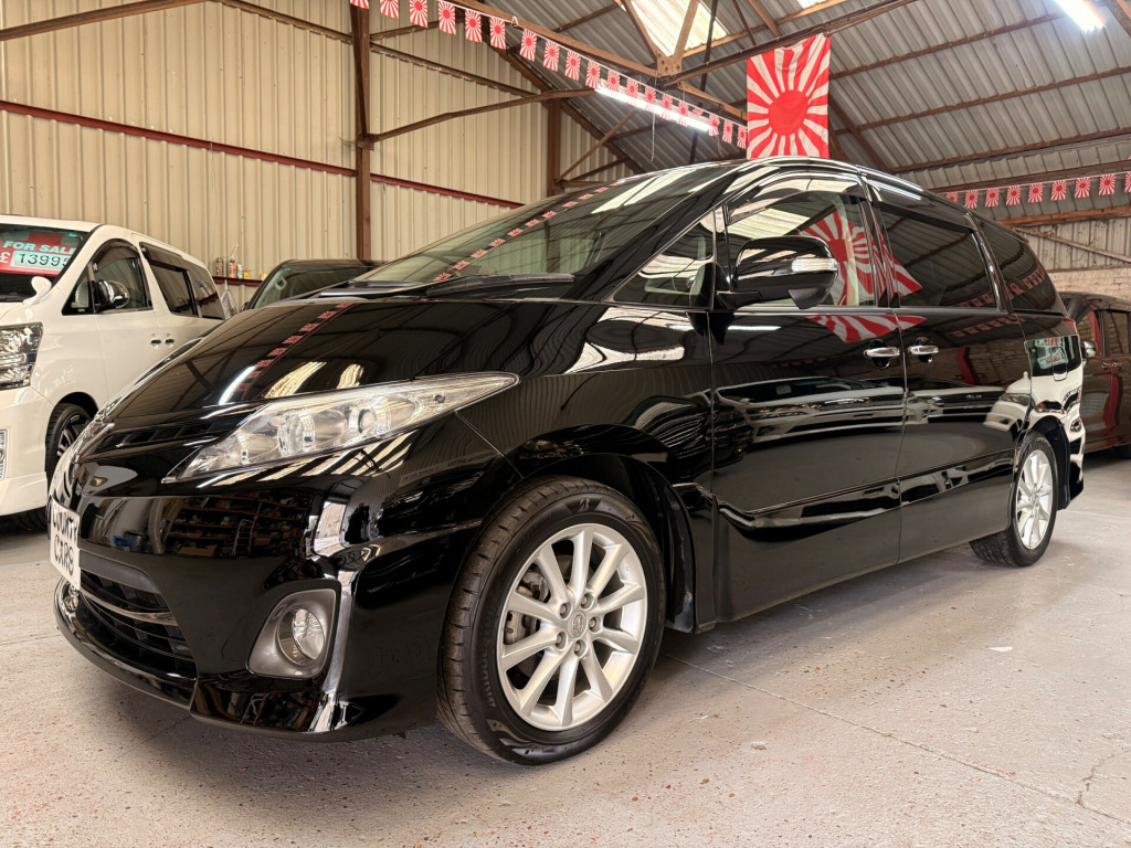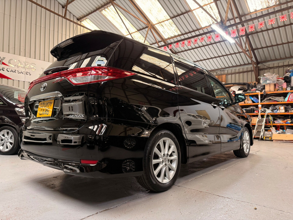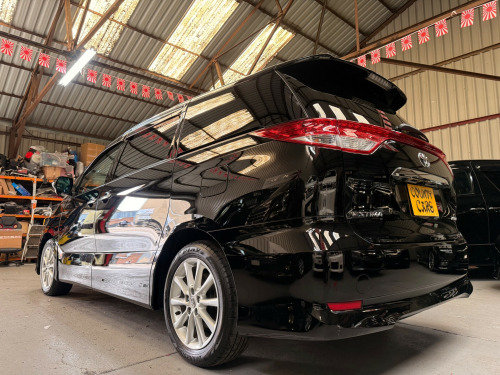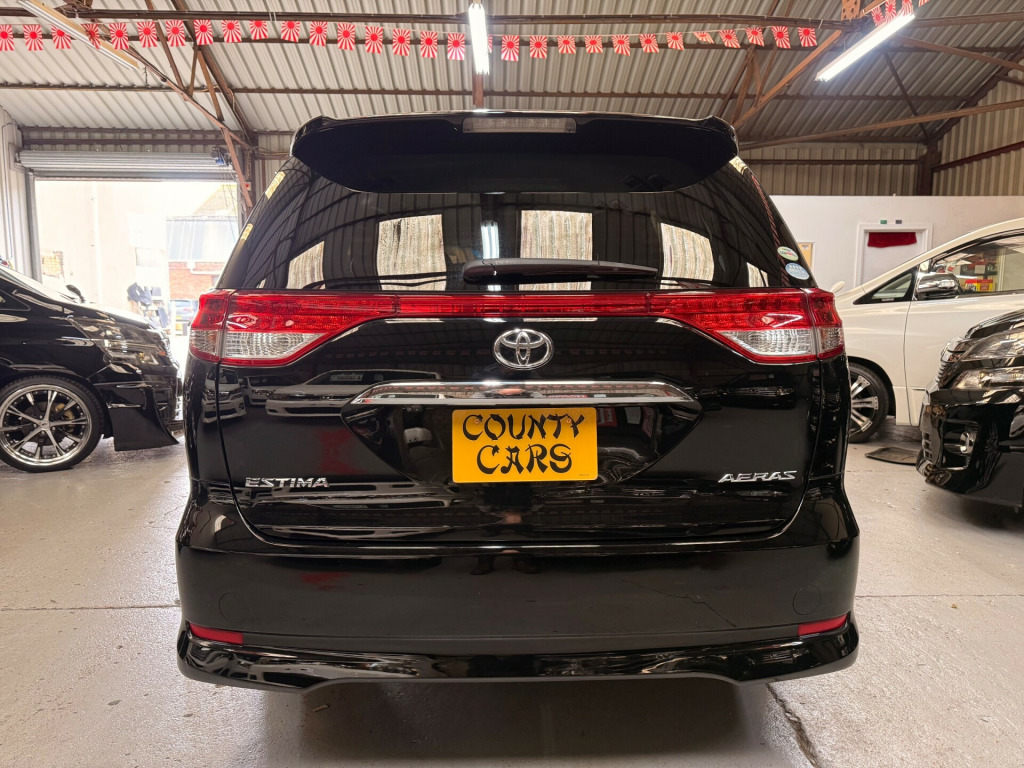 Toyota Estima 2.4 Aeras G Edition, 2010-10-Reg, Finished in stunning Black Paintwork, Front Spots with grey surrounds, Full privacy Glass, Twin Electric Soft Closing Sliding Doors, Key-less Entry, Unmarked Factory Toyota Alloys, fold away wing mirrors with built in clear indicators, L.E.D back lights, Colour Reversing camera, rear spoiler, Aeras Aero kit, 7 Seater, 7 Unmarked Leather Look Diamond Stiched Seat Covers, Front seats have armrests, Front cup-holders, The middle row of seats are lounge style seats with twin armrests, The seats can me moved forwards backwards and side to side. Centre table with cup-holders, The rear seats fold away to give access to a huge boot, Push button Start, Front and Rear Air-Con, Front and Rear E/Windows, Isofix Rear Seats, ULEZ Compliment, Only Covered a Genuine 50,000 Miles With all the Genuine Paperwork from Japan including the Auction sheet and Export certificate and mileage certificate, Fully serviced before delivery or collection, MPH Speedo Conversion Nationwide Delivery Service Available r conditioning, bluetooth connection, climate control, colour satnav, door mirrors electrically foldable, dual climate zones, full leather, xenon headlamps, cruise control, parking camera, power steering, abs, air bag, child locks, isofix child seat anchor points, passenger airbag, twin air bags, alarm, anti-theft system, central locking, keyless entry, privacy glass, remote central locking, electric front windows, electric mirrors, electric sliding doors, electric windows, rear electric windows, radio, radio/cd, stereo, front armrest, front head restraints, height adjustable drivers seat, 7 seater, folding rear seats, rear armrest, rear headrests, 2 zone climate control, push button start, alloy wheels, auto lighting, front fog lights, led headlights, led indicator lights, led rear lights, mica paint, rear spoiler, rear wash/wipe, space saver spare wheel