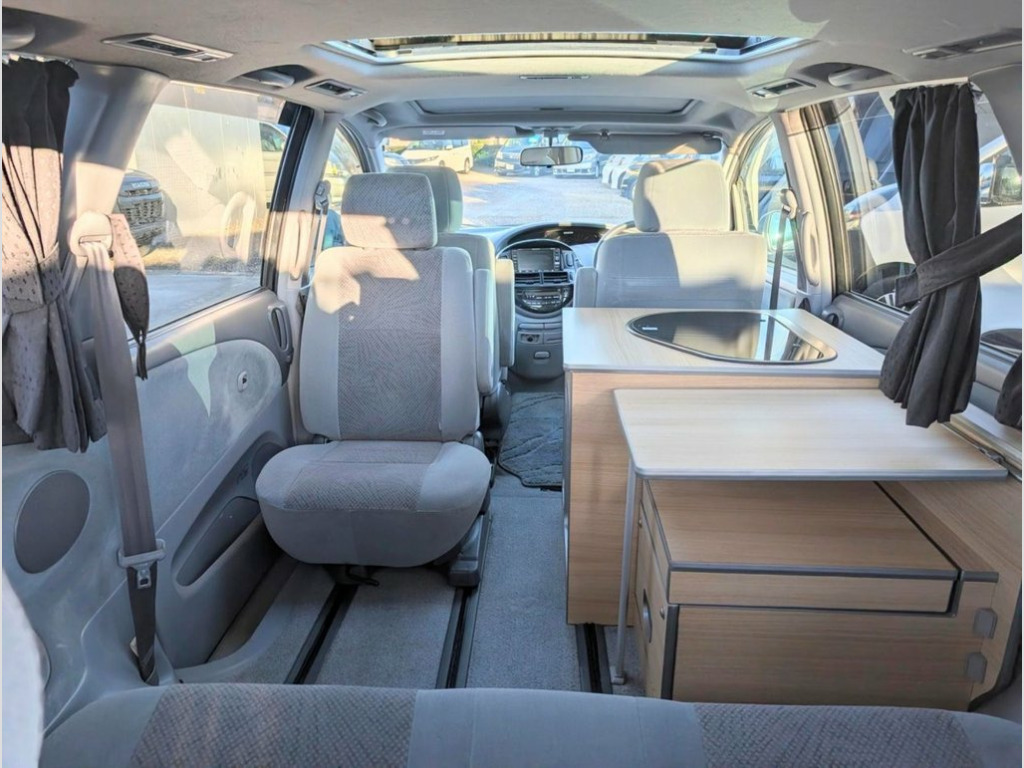 Are you looking for a spacious, reliable, multipurpose and comfortable vehicle for family trips or daily commutes? Replace your car today with this Toyota Estima Dayvan! Combining practicality, style, and unbeatable performance, this is the ideal vehicle for those who need a versatile people carrier as a daily driver or getaway vehicle.The Toyota Estima is is an excellent choice if you're looking for a versatile vehicle. Renowned for its durability and build, the Estima offers a perfect blend of performance and comfort, making it ideal for families, road trips, or daily commutes. With its sleek design and ample interior space, the Estima stands out in the minivan category. Additionally, Toyota's reputation for longevity and low maintenance costs ensures peace of mind and great value for your investment. Awnings, cycle carrier towbars or other accessories can also be added, please contact us for details. Sleeps 2 , Seats 7, Versatile Dayvan: Foldable seats and fla, Functions as an estate car, people carri, 1 Burner Gas Stove, storage, Finished Wood Surfaces, LED Lighting, 12v Leisure Battery System, Gas Box, Freshwater System, Curtains, Pop Up Table, Air Conditioning, Tinted windows