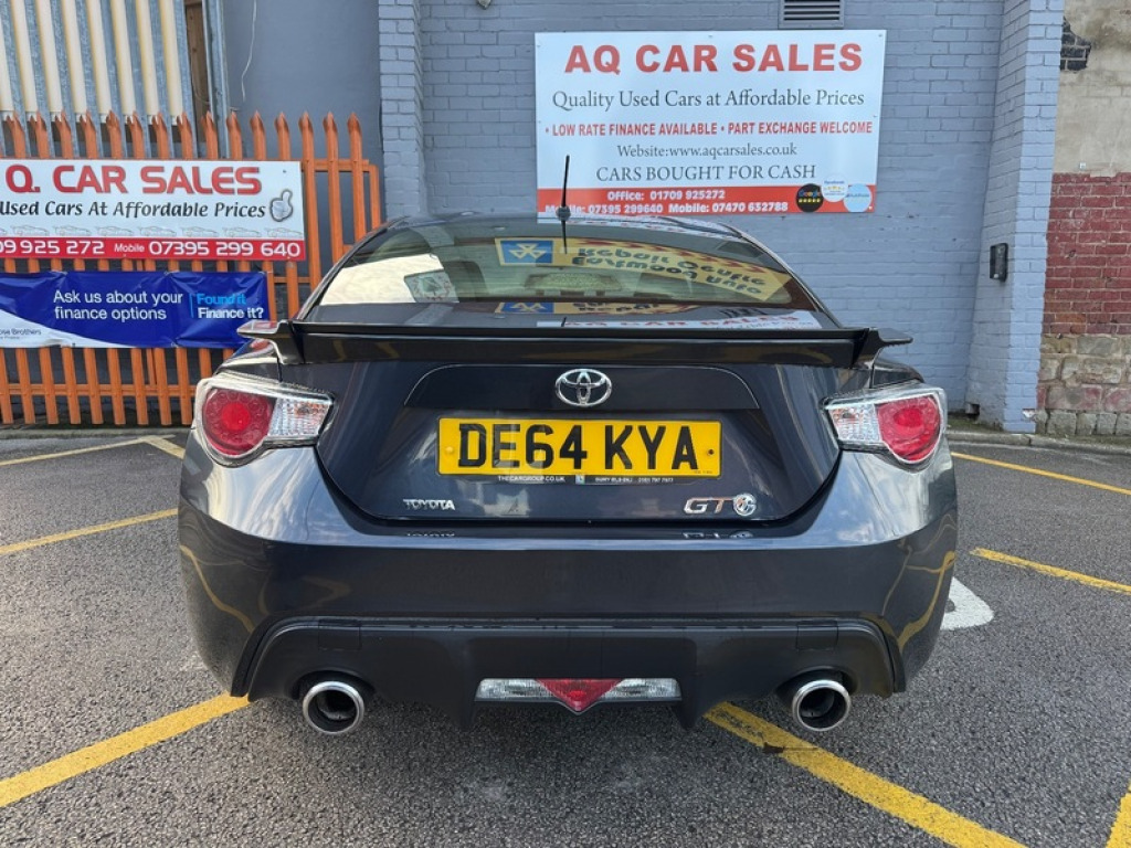 Cruise In Style In This Exquisite Toyota GT86 D-4S | 2.0 Petrol | 6 Speed Automatic | Full HPI Clear | Very Low Mileage | Ulez Compliant | Will Come With Long MOT Until 14/06/2026 | Great Spec Including Satellite Navigation, Bluetooth, Cruise Control & More | Free Interim Service Carried Out Prior To Sale | Free 3 Months Nationwide Warranty, Free 12 Months Breakdown Cover And £75 Off Your Next Service & MOT With All Of Our Vehicles | Well Looked After Example | Looks And Drives Great 5-Day AA Driveaway Insurance Available From Just £44.99 (Subject To Eligibility) | 10% Off AA Comprehensive Car Insurance Any Inspection Or Test Drive Welcome | Nationwide Delivery Service Available | Viewing Is Highly Recommended | Upgraded Warranty Cover Is Available From Only £249 Giving You That Added Peace Of Mind (6 & 12 Month Covers Available) | Competitive Prices Paid For Part Exchanges | All Of Our Vehicles Are HPI Checked And Mileage Checked ++ Keyless Start ++ Satellite Navigation ++ Bluetooth ++ CD Player/USB/AUX ++ Cruise Control ++ Sport Drive Mode ++ Dual Climate Control ++ Automatic Headlights & Windscreen Wipers ++ Electric Folding Wing Mirrors ++ Daytime Running Lights ++ ** All Major Debit And Credit Cards Accepted | Open 7 Days A Week With No Appointments Necessary | Late Night Viewings Available By Appointment Only | All Of Our Cars Are Ready To Drive Away Today | Call Our Sales Team Today on 01709 925272 To Arrange A Test Drive | Leave A Deposit To Secure This Vehicle Today** ABS, Air Conditioning, Alarm, Alloy Wheels, Bluetooth, Body Coloured Bumpers, Brake Assist, Central Locking, Climate Control, Cruise Control, Cup Holders, Daytime Running Lights, ESP, Electric Folding Mirrors, Electric Mirrors, Electric Windows, Engine Immobiliser, Folding Rear Seats, Front Airbags, Front Fog Lights, Heated Door Mirrors, Heated Rear Windshield, Hill-Start Assist, ISOFix Anchor Point, MOT, MP3, Power Assisted Steering, Privacy/Tinted Glass, Radio, Rain Sensor, Reading Lights, Rear Spoiler, Safety Belts, Safety Belts Rear, Satellite Navigation, Service History, Speakers, Speed Limiter, Sports Suspension, Steering Wheel Controls, Traction Control, V5 Registration Document