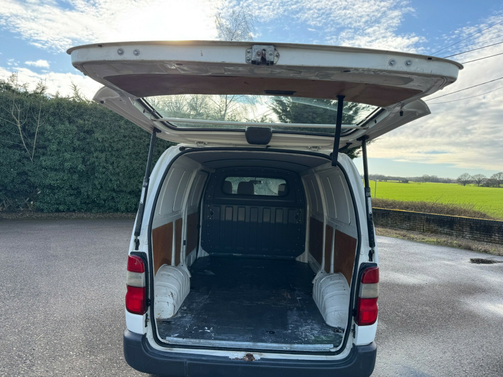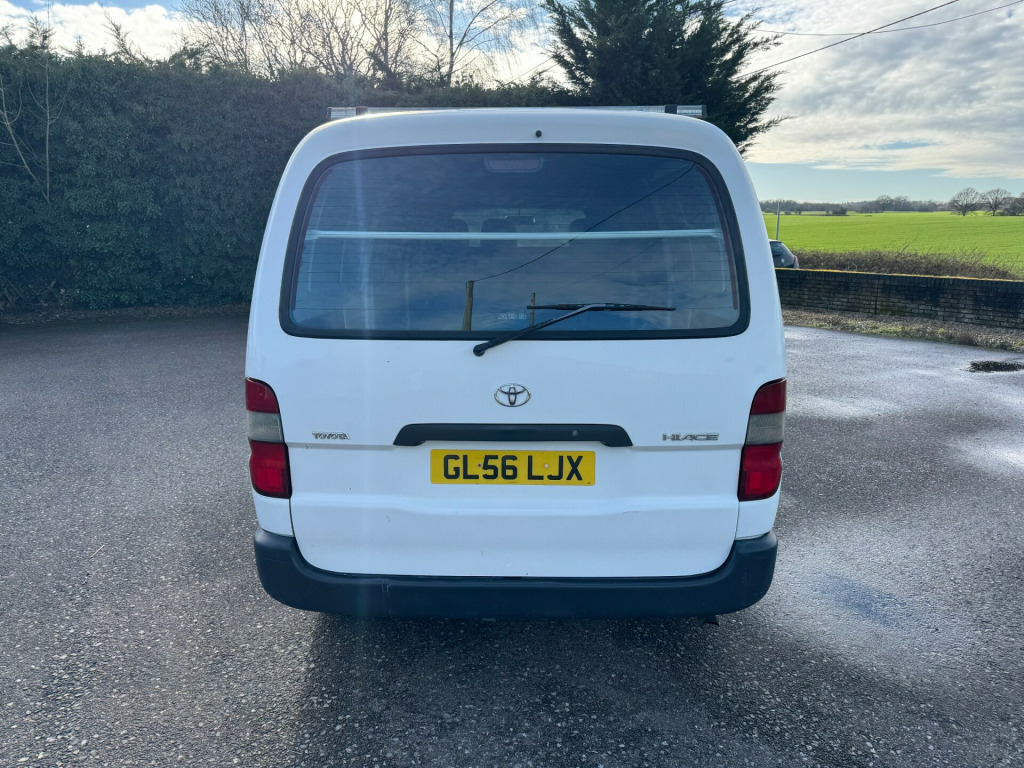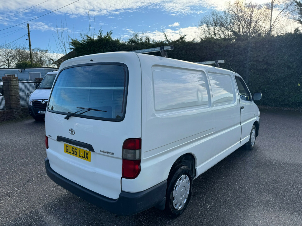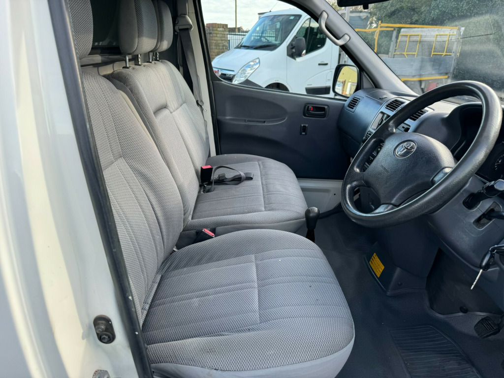 ONLY 2 OWNERS FROM NEW VERY SOUGHT AFTER LWB D4D TOYOTA HIACE LWB LOW MILES SERVICE HISTORY REAR TAILGATE BE QUICK!, justable steering column/wheel, ashtray/lighter, clock, cup holder, electric windows (front), extra storage, heated rear screen, in car entertainment (radio/cd), speakers, tinted glass, upholstery cloth, air bag driver, anti-lock brakes, central door locking, headlight elevation, immobiliser, power-assisted steering, seat belt pre-tensioners, third brake light, bulkhead, load anchorage points, tachometer, mirrors external, rear wash/wipe, spare wheel, steel wheels