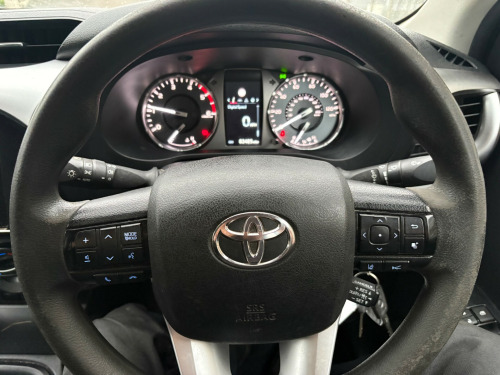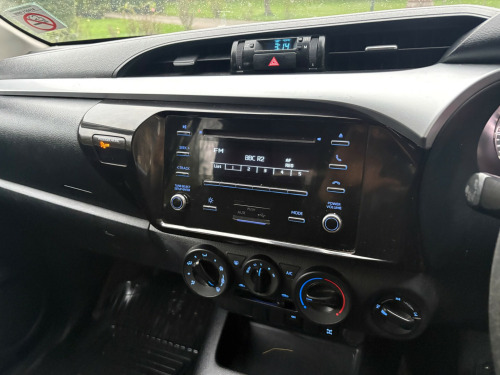 This 2021 Toyota Hilux is a reliable pickup truck with only 82000 miles on the clock. Powered by a 2.4 D-4D diesel engine, it's a tough and durable vehicle perfect for any work environment. With an MOT that expires on 23/05/2026 and ULEZ compliance, this pickup is ready for the road. It boasts 4 seats and 4 doors, providing comfort and convenience for both driver and passengers. The exterior features 17in black steel wheels, all-terrain tyres, body-colored bumpers, and a dark grey rear bumper, as well as front mudguards. This is a versatile and capable vehicle that can handle anything you throw at it, making it the ideal choice for anyone in need of a reliable and powerful pickup truck., in steel wheels - black, all-terrain tyres, bumpers - body coloured, dark grey rear bumper, front mudguards, front and rear power windows, full spare steel wheel, power adjustable and heated door mirrors, rear fog light, rear mudguards, active traction control - atc, anti lock braking system - abs with electronic brake-force distribution - ebd, ba - brake assist, emergency brake-light signal - ebs - hazard type, front passenger airbag detector, front passenger airbag on-off switch, front seat belt reminder, hac - hill start assist control, immobiliser, lockable tailgate, pre-collision system with pedestrian detection, supplemental restraint system - srs - airbags - 7 airbags, toyota safety sense 2, trailer sway control - tsc, underbody protection cover, vsc - vehicle stability control, auto headlights, daytime running lights, follow me home headlights, headlight cut-off reminder, manual headlight levelling, multi-reflector halogen headlights, aux-in connector, bluetooth connectivity, front 12v power outlet, radio and cd player with mp3 and wma, speakers x4, usb connector, cabin protection deck frame, cooler in upper glovebox, floor mats - rubber, inner load hooks on cargo deck, manual air conditioning, outer load hooks on cargo deck, urethane steering wheel and gearshift, intelligent adaptive cruise control, lane departure alert, power steering, road sign assist, tpms - tyre pressure monitoring system