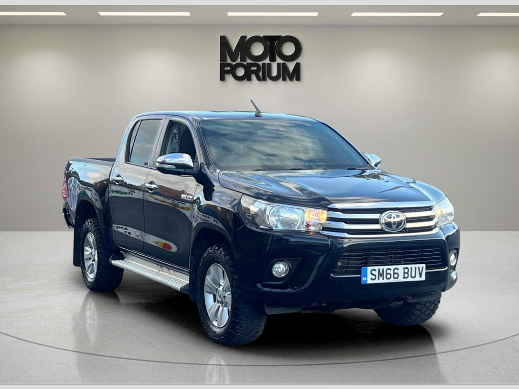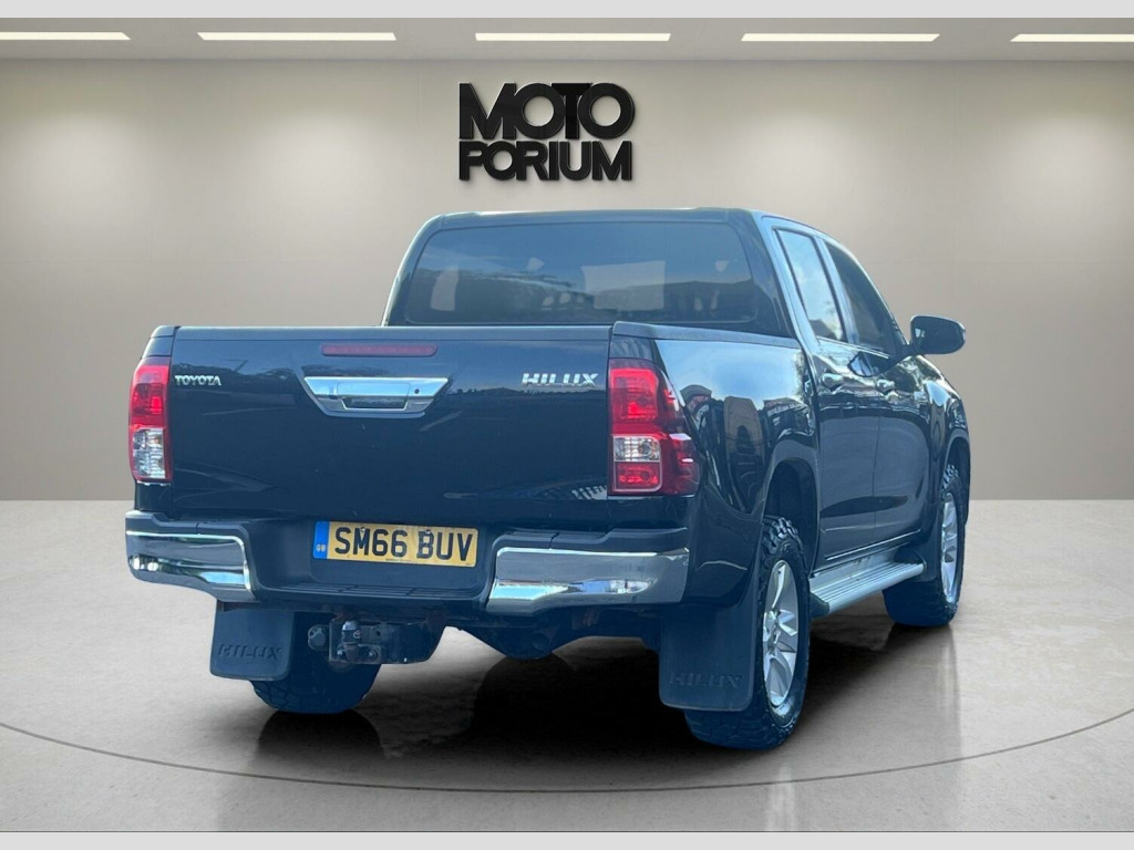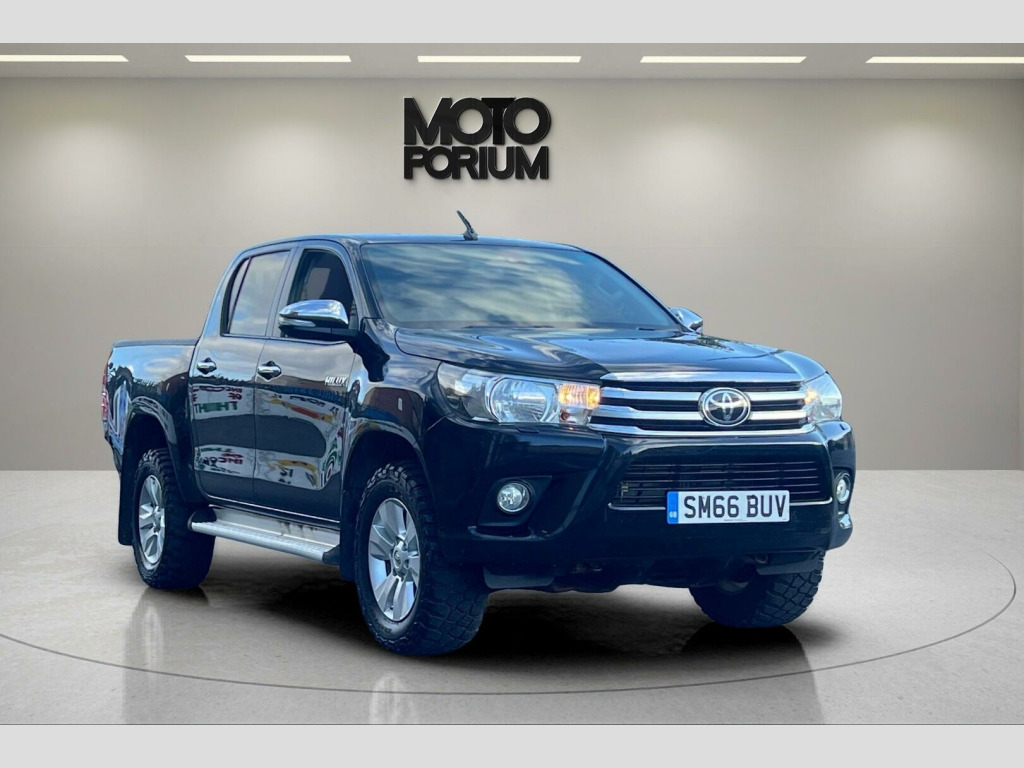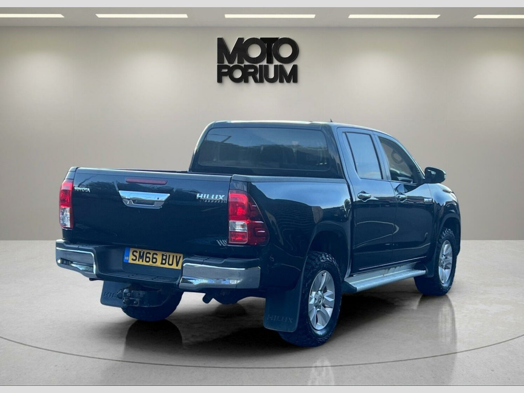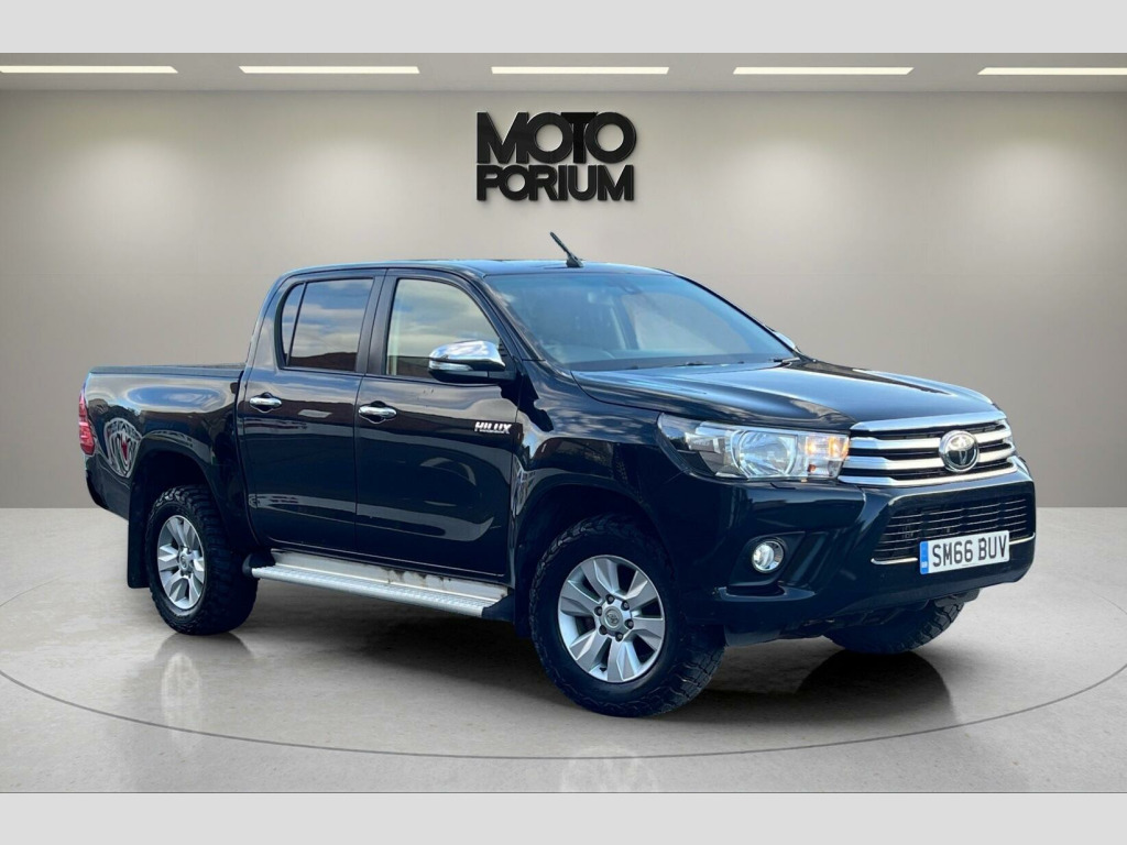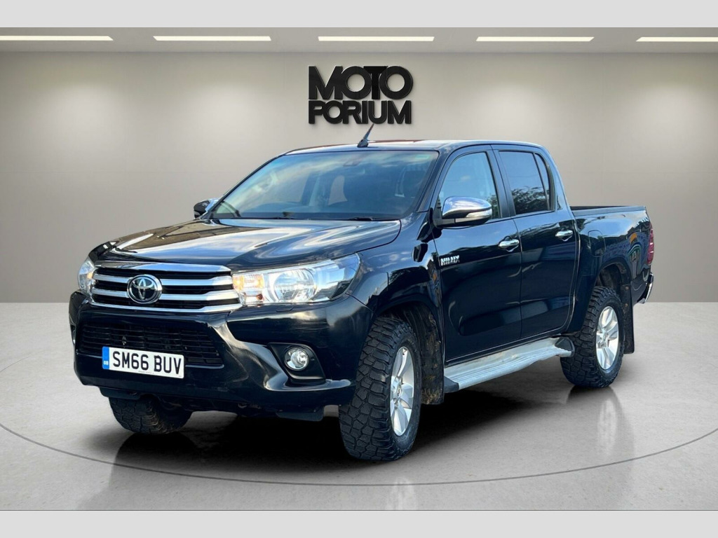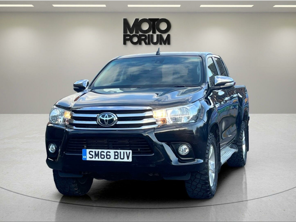 TOYOTA HILUX - ICON MODEL - 2.4D-4D -4WD - EURO 6 - DONE 64180 MILES MANUAL - IN BLACK - WITH BLACK CLOTH INTERIOR - GOOD SERVICE HISTORY - PRE DELIVERY SERVICE PROVIDED - FRESH MOT TO BE DONE - CRUISE CONTROL - REVERSE CAMERA - AIR CON - PRIVACY GLASS - ELECTRIC FOLDIND DOOR MIRRORS - CHROME MIRRORS COVERS - CHROME DOOR HANDLES -FINANCE AVAILABLE - SECURE TODAY FOR £99 - NATIONWIDE DELIVERY SERVICE AVAILABLE - MANY MORE PICK UPS IN STOCK - VISIT WWW.MOTOPORIUM.COM. 12V Socket x2, 17in Alloy Wheels - 6 Spoke, 220V Plug Socket, 4.2in Multi-Information Display Screen, 4WD Switch on Drivers Side, 60-40 Split Tip Up Rear Bench, All-Terrain Tyres, Anti Lock Braking System - ABS with Electronic Brake-Force Distribution - EBD, Anti-Jam Protection on Drivers Window, Aux Input, BA - Brake Assist, Black Fabric Front Door Armrests, Black Surround on Front Fog Lights, Bluetooth Connectivity, Body-Coloured Front Bumper, Bumpers - Rear Chrome Plated, Centre Room Light, Child Safety Locks on Rear Doors, Chrome Handbrake Button, Chrome Insert on Centre and Side Air Vents, Chrome Insert on Gear Shift, Chrome Interior Door Handles, Chrome Tailgate Release handle, Chrome Upper Front Grille, Clean Air Filter, Cruise Control, DAB Digital Radio, DAC - Downhill Assist Control, Daytime Running Lights, Differential Locking - Rear, Door Courtesy Light, Door Handles - Chrome, Door Mirrors - Chrome, Driver and Front Passenger Personal Lights, Driver and Front Passenger Whiplash Injury Lessening - WIL - Seats, Eco Driving Indicator, Eco Driving Switch on Centre Console, Electric Windows - Front and Rear, Emergency Brake-Light Signal - EBS - Hazard Type, Fabric Rear Armrest, Fabric Stitching Armrest on Console Box, Follow Me Home Headlights, Front Console Box, Front Cool Box, Front Fog Lights, Front Seat Belt Reminder, Full Spare Steel Wheel, Gear Shift Surround - Chrome, Gear Shift Surround on Centre Console - Silver, HAC - Hill Start Assist Control, Headlight Cleaners, Headlights - Automatic On, ISOFIX Fixing Points, Illuminated Entry System, Immobiliser, Indicator Integrated in Door Mirrors, Inner Load Hooks on Cargo Deck, Key Reminder Warning, Leather Gear Shift, Lockable Tailgate, Locking Glove Box, Manual Air Conditioning, Manual Day-Night Rear-View Mirror, Manual Headlight Levelling, Manual Tilt and Telescopic Adjustable Steering Wheel, Manually Height-Adjustable Driver Seat, Mirror on Passenger Sun Visor, Mud Flaps - Front and Rear, Multi-Reflector Halogen Headlights, Padded Armrest on Front Console Box, Pollen Air Filter, Power Adjustable - Heated - Foldable Door Mirrors, Power Door Locks, Power Mode Switch on Centre Console, Power Passenger Window Lock, Power Steering, Rear Headrests x3, Rear Passenger Coat Hooks x2, Rear Passenger Footwell Heating, Rear Privacy Glass, Rear Seat Belt Reminder, Remote Central Locking, Reversing Camera, Seat Belt - Pre-Tensioners and Force Limiters, Seatback Pocket Shopping Bag Hooks, Side Steps, Silver Insert on Centre Console, Silver Insert on Front Console Box, Silver Insert on Steering Wheel, Silver Side Air Vent Surrounds, Slow Opening Lower Glovebox, Speakers x6, Steering Wheel - 4-Spoke Leather, Sunglasses Holder, Supplemental Restraint System - SRS - Airbags - 7 Airbags, Tailgate Release handle, Telephone - Audio and Multimedia Switches on Steering Wheel, Ticket Holder on Drivers Sunvisor, Toyota Safety Sense, Toyota Touch 2 Multimedia with 7in Display, Traction Control - Active, Trailer Sway Control - TSC, USB Connection, Underbody Protection Cover, Urethane Handbrake, VSC - Vehicle Stability Control, Wide Fenders.