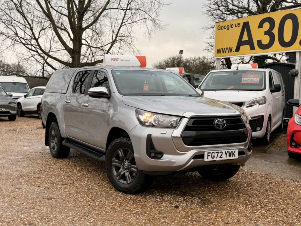 This 2022 Toyota Hilux Icon 4WD is a superb example, having had only one owner since new. This robust 2.4 D-4D Icon 4WD Euro 6 (s/s) 4dr model benefits from a powerful 2.4 litre diesel engine and a reliable four wheel drive system, making it ready for any challenge. It comes equipped with a flanged towbar featuring 13 pin wiring, manual air conditioning for your comfort, and intelligent adaptive cruise control for effortless journeys. Automatic headlights and Bluetooth connectivity further enhance its practicality and ease of use.With a notable fuel economy of 32 miles per gallon and low CO2 emissions, this Hilux offers an efficient driving experience. The vehicle is supplied with a 12 month MOT, ensuring its roadworthiness. Its impressive towing weight of 3500 kg means it is well suited for towing heavy loads, setting it apart from many other vehicles in its class.. 17in Alloy Wheels - 6 Spoke, 60-40 Split Tip Up Rear Bench, Active Traction Control - ATC, All-Terrain Tyres, Anti Lock Braking System - ABS with Electronic Brake-Force Distribution - EBD, Auto Headlights, BA - Brake Assist, Bluetooth Connectivity, Bumpers - Body Coloured, Chrome Rear Bumper, Cooler in Upper Glovebox, DAC - Downhill Assist Control, Daytime Running Lights, Digital Audio Broadcast - DAB, Emergency Brake-Light Signal - EBS - Hazard Type, Floor Mats - Textile, Follow Me Home Headlights, Front 12V Power Outlet x2, Front Mudguards, Front Passenger Airbag Detector, Front Passenger Airbag On-Off Switch, Front Seat Belt Reminder, Front and Rear Power Windows, Full Spare Steel Wheel, HAC - Hill Start Assist Control, Headlight Cut-Off Reminder, Height Adjustable Driver Seat, Immobiliser, Inner Load Hooks on Cargo Deck, Intelligent Adaptive Cruise Control, LED Front Fog Lights, Lane Departure Alert, Leather Steering Wheel and Gear Shift, Lockable Tailgate, Manual Air Conditioning, Manual Headlight Levelling, Multi-Reflector Halogen Headlights, Power Steering, Pre-Collision System with Pedestrian Detection, Privacy Glass - Rear, Rear Fog Light, Rear Mudguards, Rear View Camera, Retractable - Power Adjustable and Heated Door Mirrors, Reversing Camera Display in Audio Screen, Road Sign Assist, Shade Band on Windshield, Side Steps - Black, Smartphone Integration including Apple Car Play and Android Auto, Speakers x6, Static Guide Lines on Rear-View Camera Display, Supplemental Restraint System - SRS - Airbags - 7 Airbags, TPMS - Tyre Pressure Monitoring System, Toyota Safety Sense 2, Toyota Touch 2 Multimedia, Trailer Sway Control - TSC, USB Connector, Underbody Protection Cover, VSC - Vehicle Stability Control, Black Side Bars, Towbar - Flanged with 13-Pin Wiring, Toyota Genuine Leisure Hardtop, Fabric - Black, Plastic Bedliner Underrail.