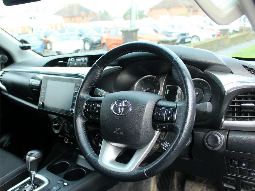 Introducing the 2021 Toyota Hilux 2.4 D-4D Icon Pickup Double Cab 4dr Diesel Auto 4WD Euro 6 (s/s) (150 ps), boasting an impressive 12500 miles on the clock, this reliable pickup is powered by a diesel engine, making it an ideal choice for commercial use. ULEZ compliant, this vehicle offers peace of mind for city driving. Equipped with 5 seats and 4 doors, it provides ample space for passengers and cargo. The sleek exterior features 17in Alloy Wheels, All-Terrain Tyres, Body Coloured Bumpers and a Chrome Rear Bumper, while the interior boasts a practical yet stylish design. Perfect for work and play, this Toyota Hilux is ready to tackle any task with ease. Contact us today to arrange a test drive and experience the power and versatility of this exceptional pickup., OPEN 7 DAYS A WEEK - A SELECTION OF UP TO 200 CARS AND VANS AVAILABLE. Click on dealer 'VISIT WEBSITE' link for many more large photographs of this car. We are a West Sussex Trading Standards Approved 'Buy with Confidence Dealership'. in alloy wheels - 6 spoke, all-terrain tyres, bumpers - body coloured, chrome rear bumper, front mudguards, front and rear power windows, full spare steel wheel, privacy glass - rear, rear fog light, rear mudguards, retractable - power adjustable and heated door mirrors, shade band on windshield, side steps - black, 60-40 split tip up rear bench, cooler in upper glovebox, floor mats - textile, height adjustable driver seat, inner load hooks on cargo deck, leather steering wheel and gear shift, manual air conditioning, active traction control - atc, anti lock braking system - abs with electronic brake-force distribution - ebd, ba - brake assist, dac - downhill assist control, emergency brake-light signal - ebs - hazard type, front passenger airbag detector, front passenger airbag on-off switch, front seat belt reminder, hac - hill start assist control, immobiliser, lockable tailgate, pre-collision system with pedestrian detection, supplemental restraint system - srs - airbags - 7 airbags, toyota safety sense 2, trailer sway control - tsc, underbody protection cover, vsc - vehicle stability control, auto headlights, daytime running lights, follow me home headlights, headlight cut-off reminder, led front fog lights, manual headlight levelling, multi-reflector halogen headlights, bluetooth connectivity, digital audio broadcast - dab, front 12v power outlet x2, smartphone integration including apple car play and android auto, speakers x6, toyota touch 2 multimedia, usb connector, intelligent adaptive cruise control, lane departure alert, power steering, rear view camera, reversing camera display in audio screen, road sign assist, static guide lines on rear-view camera display, tpms - tyre pressure monitoring system