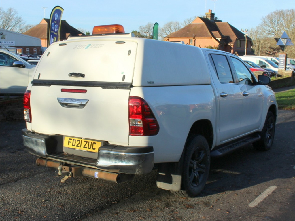For sale is a 2021 Toyota Hilux 2.4 D-4D Icon Pickup Double Cab with a powerful 150 ps Diesel engine and manual 4WD transmission. This reliable commercial vehicle has only 30400 miles on the clock, and comes with a valid MOT until 28/06/2026. With its spacious 5 seats and 4 doors, this pickup is perfect for both work and leisure, and is ULEZ compliant for driving in low emission zones. Whether for hauling heavy loads or tackling tough terrain, this Hilux delivers top performance and reliability. Don't miss out on this opportunity to own a quality, low mileage commercial vehicle at a competitive price., OPEN 7 DAYS A WEEK - A SELECTION OF UP TO 200 CARS AND VANS AVAILABLE. Click on dealer 'VISIT WEBSITE' link for many more large photographs of this car. We are a West Sussex Trading Standards Approved 'Buy with Confidence Dealership'. in alloy wheels - 6 spoke, all-terrain tyres, bumpers - body coloured, chrome rear bumper, front mudguards, front and rear power windows, full spare steel wheel, privacy glass - rear, rear fog light, rear mudguards, retractable - power adjustable and heated door mirrors, shade band on windshield, side steps - black, 60-40 split tip up rear bench, cooler in upper glovebox, floor mats - textile, height adjustable driver seat, inner load hooks on cargo deck, leather steering wheel and gear shift, manual air conditioning, active traction control - atc, anti lock braking system - abs with electronic brake-force distribution - ebd, ba - brake assist, dac - downhill assist control, emergency brake-light signal - ebs - hazard type, front passenger airbag detector, front passenger airbag on-off switch, front seat belt reminder, hac - hill start assist control, immobiliser, lockable tailgate, pre-collision system with pedestrian detection, supplemental restraint system - srs - airbags - 7 airbags, toyota safety sense 2, trailer sway control - tsc, underbody protection cover, vsc - vehicle stability control, auto headlights, daytime running lights, follow me home headlights, headlight cut-off reminder, led front fog lights, manual headlight levelling, multi-reflector halogen headlights, bluetooth connectivity, digital audio broadcast - dab, front 12v power outlet x2, smartphone integration including apple car play and android auto, speakers x6, toyota touch 2 multimedia, usb connector, intelligent adaptive cruise control, lane departure alert, power steering, rear view camera, reversing camera display in audio screen, road sign assist, static guide lines on rear-view camera display, tpms - tyre pressure monitoring system