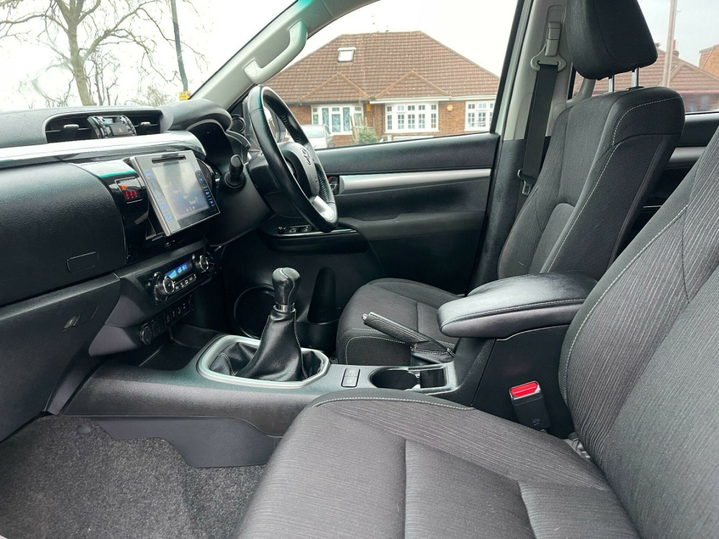 +VAT. We are delighted to be presenting to you this wonderful top-of-the-range Toyota Hilux INVINCIBLE in lovely condition with plenty of upgrades such as Reverse Camera, LED Day-Light, Cruise Control, Bluetooth, A/C Air Conditioning,..., amongst others. This example has only had ONE OWNER FROM BRAND NEW and the previous owner have been a large organisation which have regularly maintained the truck, visible from its internal and external condition. This truck comes with TWO SETS OF KEYS, it will be given to you with a long MOT and it has just been serviced fully:-Engine Oil Removed and Replaced-Engine Oil Filter Removed and Replaced-Air Filter Removed and ReplacedInternal and external condition of the car are good for the age and mileage; you can judge for yourself just by looking at the images and the video (more, larger images available on our website TRUSTMOTORCARS CO UK) or hopefully if you visit us very soon. Please do get in touch with us should you wish to arrange a viewing or if you would like to have it delivered to your door. More images of this car and many more are on our website so please feel free to visit us there; thank you. Part Exchange Welcome.-GUARANTEED MOT: WE WILL HAVE A NEW MOT DONE FOR YOU IF THE MOT RUNS OUT SOON-AFFORDABLE FINANCE OPTIONS AVAILABLE - PLEASE GET IN TOUCH WITH US FOR MORE DETAILS-THREE MONTHS WARRANTY-OPTIONAL EXTENDED AA WARRANTY COVER-MORE PHOTOS AND VIDEOS OF THIS VEHICLE AND MANY OTHERS ON OUR WEBSITE: TRUSTMOTORCARS CO UK-PART EXCHANGE WELCOME.-WE ARE BASED NEXT TO HEATHROW AIRPORT, MINUTES TO M25 J14, M4, M40, M3 and A312-NATIONWIDE DELIVERY AVAILABLE. v socket, 18in alloy wheels, 220v plug socket, 4.2in multi-information display screen, 4wd auto disconnecting differential - add, abs - anti lock braking system, airbags - curtain, airbags - driver, airbags - driver knee, airbags - front passenger, airbags - front side, automatic air conditioning, automatic headlight levelling, ba - brake assist, carpet floor covering, centre console with storage and armrest lid, chrome door handles and mirrors, chrome side bars with integrated steps, clock, colour-keyed front bumper, colour-keyed overfenders, cruise control, dac - downhill assist control, differential locking - rear, dusk sensor, ebd - electronic brakeforce distribution, electric front windows, electrically adjustable heated door mirrors with integrated turn indicators, follow me home headlights, front cool box, front fog lights, front seatbelts with pretensioners and load limiters, fuel heater, full spare alloy wheel, hac - hill start assist control, headlight cleaners, headlight warning buzzer, headlights - led, heated rear window, isofix fixing points, immobiliser, keyless entry system, leather steering wheel with audio controls and leather gear shift trim, load sensing proportioning system, lockable tailgate, locking glove box, mud flaps - front and rear, outer rear seatbelts with pretensioners and load limiters, perimeter alarm, power retractable door mirrors, power steering, push button start, radiator grille - chrome, rear privacy glass, remote central locking, scuff plates, single tip up rear bench, tachometer, tilt and reach adjustable steering column, toyota safety sense, toyota touch 2, traction control - active, trailer sway control - tsc, usb and aux in, vsc - vehicle stability control, variable rate windscreen wiper
