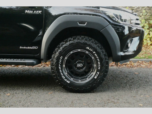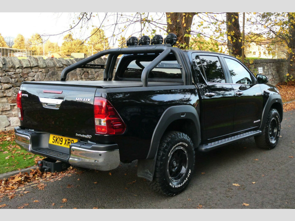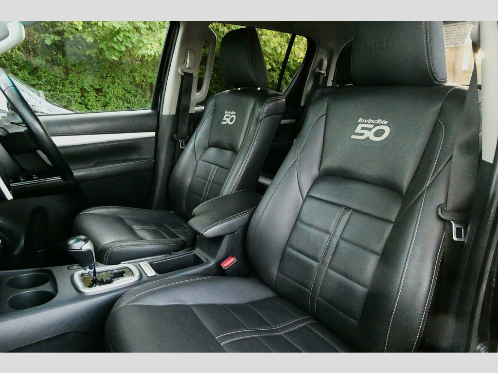 We Are Delighted To Offer This Very Rare, Low Mileage 1 Owner From New Hilux 50th Anniversary Edition With A Full Toyota Service History. Launched By Toyota To Celebrate 50 Years Of This Iconic Truck With Only 50 Models Made Available To The UK Market, This Hilux Being Number 11 of 50. In A Collaboration Between The Manufacturer & Icelandic Based Artic Trucks Boasting exceptionally low mileage for its age, this 2019 Toyota Hilux Invincible 50 is a testament to careful ownership. This 4x4 double cab pickup, powered by a robust 2.4 litre D-4D diesel engine, is presented in the desirable Invincible 50 trim. With only one owner since new and a modest 41,000 miles on the clock, it represents excellent provenance. The vehicle is equipped with a keyless entry system for effortless access, dual zone climate control air conditioning to ensure comfort for all occupants, and a reversing camera complemented by rear parking sensors for enhanced manoeuvrability. Stay connected on the go with Bluetooth connectivity.This Euro 6 compliant Hilux offers a compelling blend of capability and efficiency, with a highlight fuel economy of 36 miles per gallon and low CO2 emissions. Its impressive towing weight of 3200 kg makes it a highly capable workhorse. These factors, combined with its single owner history and minimal mileage, indicate that this Hilux has been exceptionally well looked after and offers superior value compared to other vehicles of its kind.. 12V Socket, 16in Alloy Wheels - Invincible 50 in Satin Black with Machined Lip - 7.5 ET 05, 220V Plug Socket, 265-75 R16 BF Goodrich KO2 All-terrain Tyres, 4.2in Multi-Information Display Screen, 4WD Auto Disconnecting Differential - ADD, 6in Round LED lights with Brackets and Covers x4 on Sports Bar, 7in Touchscreen with Toyota Touch 2 Go Navigation and Enhanced Features, ABS - Anti Lock Braking System, AT Designed ABS Finish Fender Flares - Front and Rear, Airbags - Curtain, Airbags - Driver, Airbags - Driver Knee, Airbags - Front Passenger, Airbags - Front Side, Automatic Headlight Levelling, Aux-In Connector, BA - Brake Assist, Bespoke Widened Front and Rear Fender Package, Bluetooth Connectivity, Carpet Floor Covering, Centre Console with Storage and Armrest Lid, Chrome Door Handles and Mirrors, Classic TOYOTA Tailgate Graphic, Clock, Colour-Keyed Front Bumper, Colour-Keyed Overfenders, Cruise Control, DAB Digital Radio, DAC - Downhill Assist Control, Differential Locking - Rear, Double Hoop Invincible 50 Sports Bar in Matte Black Featuring 4 high-Power Vision X Canon Lights, Dual Zone Climate Control Air Conditioning, Dusk Sensor, EBD - Electronic Brakeforce Distribution, Electric Front Windows, Electrically Adjustable Heated Door Mirrors with Integrated Turn Indicators, Extended Profile Arctic Trucks Side Steps, Follow Me Home Headlights, Front Cool Box, Front Fog Lights, Front Seatbelts with Pretensioners and Load Limiters, Fuel Heater, Full Spare Alloy Wheel, Fully Optimised Artic Trucks and Bilstein Performance Suspension Solution Featuring Front Coilovers - Dampers and Coil Springs and Rear Dampers - 40mm Front Lift - Combined with 20mm Rear Leaf Elevation), HAC - Hill Start Assist Control, Headlight Cleaners, Headlight Warning Buzzer, Headlights - LED, Heated Rear Window, ISOFIX Fixing Points, Immobiliser, Individually Numbered Invincible 50 Interior Plaque, Keyless Entry System, Leather Steering Wheel with Audio Controls and Leather Gear Shift Trim, Line-X Over Rail Bed Liner, Load Sensing Proportioning System, Lockable Tailgate, Locking Glove Box, Mud Flaps - Front and Rear, Outer Rear Seatbelts with Pretensioners and Load Limiters, Parking Sensors - Rear, Perimeter Alarm, Power Retractable Door Mirrors, Power Steering, Push Button Start, Radiator Grille - Chrome, Rear Arctic Trucks Mud Guards, Rear Privacy Glass, Remote Central Locking, Reversing Camera, Scuff Plates, Single Tip Up Rear Bench, Smart Entry and Push-Button Start, Speakers x6, Tachometer, Tilt and Reach Adjustable Steering Column, Toyota Safety Sense, Traction Control - Active, Trailer Sway Control - TSC, Tubular Rear Sports Bar, Tubular Rear Tow Ball Receiver and Height Bar, USB Connection, USB and Aux In, VSC - Vehicle Stability Control, Variable Rate Windscreen Wiper.