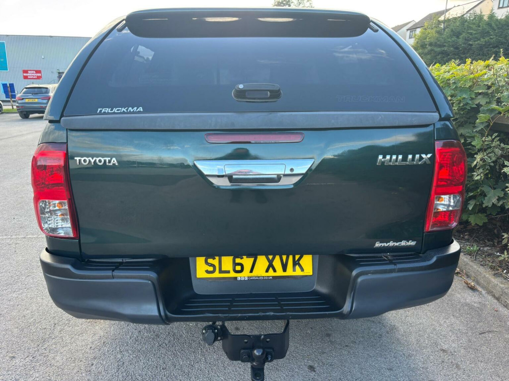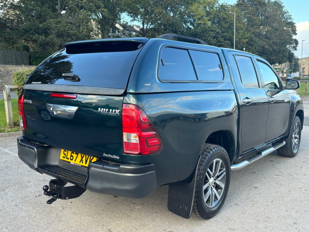 WE ARE PLEASED TO OFFER THIS HIGHLY DESIRABLE HIGH SPECIFICATION WELL MAINTAINED RARE NON VATABLE EURO SIX CLEAN AIR ZONE FRIENDLY AUTOMATIC TOYOTA HILUX 2.4 D-4D INVINCIBLE FOUR WHEEL DRIVE FOUR ( TSS, 3.5T) + FINISHED IN THE BEST COLOUR OF DARK GREEN METALLIC PAINTWORK AND IS COMPLEMENTED WITH A BLACK CLOTH UPHOLSTERY + ONLY A SENSIBLE MILEAGE OF 77,340 MILES HAS BEEN COVERED IN TOTAL + LAST OWNER SINCE FEBRUARY 2023 AND IS BACKED WITH AN EXCELLENT SERVICE HISTORY + OUTSTANDING CONDITION THROUGHOUT AND DRIVES SUPERB + POWERED BY THE LEGENDARY 2.4 D-4D ENGINE AND GEARBOX + FULL INVINCIBLE SPECIFICATION WHICH INCLUDES FULL ELECTRIC PACK / DAB TUNER / CRUISE CONTROL / KEYLESS START / SIDE STEPS / PRIVACY GLASS / 18 BI TONE ALLOY WHEELS / LED HEADLIGHTS / REVERSING CAMERA / REAR TRUCKMAN CANOPY WITH WINDOWS / MULTI FUNCTION STEERING WHEEL / TOW PACK PLUS MUCH MORE + HANDBOOK PACK + DIGITAL SERVICE HISTORY + 2 X KEYS + ANY TRIAL OR INSPECTION IS WELCOMED + HPI CLEAR WITH CERTIFICATE + SIX MONTHS NATIONWIDE WARRANTY IS INCLUDED + VIEWING IS ESSENTIAL TO APPRECIATE THIS TRULY CHERISHED EXAMPLE. We have been established in Baildon for over 20 years. All our vehicles are fully inspected, prepared and valeted. We are finance specialists. Part exchange is welcome. All major credit and debits accepted. Open 7 days. Our postcode is BD177EX.