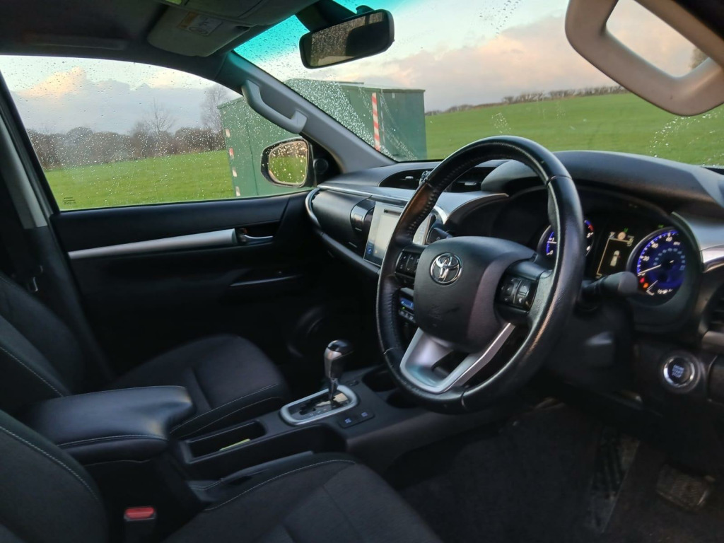 Boasting exceptionally low mileage for its age, this 2018 Toyota Hilux 2.4 D-4D Invincible Auto 4WD is a remarkable find, having been cherished by just one owner. As a Euro 6 compliant model, this Invincible trim Hilux features a robust 2.4 litre diesel engine paired with a smooth automatic transmission and capable four wheel drive. Its impressive towing weight of 3200 kg makes it a true workhorse. Inside, you'll appreciate the convenience of keyless entry, automatic air conditioning with climate control, and the Toyota Touch 2 system which includes Bluetooth connectivity and rear parking assistance with a camera. The advanced LED headlights, which activate automatically thanks to the dusk sensor, ensure excellent visibility.This Hilux stands out with its impressive fuel economy, achieving a highlight of 36 miles per gallon, and also benefits from low CO2 emissions, indicating its efficiency compared to similar vehicles. With a mere 18750 miles on the clock, this vehicle represents excellent value and is ready for its next adventure.. 12V Socket, 18in Alloy Wheels, 220V Plug Socket, 4.2in Multi-Information Display Screen, 4WD Auto Disconnecting Differential - ADD, ABS - Anti Lock Braking System, Airbags - Curtain, Airbags - Driver, Airbags - Driver Knee, Airbags - Front Passenger, Airbags - Front Side, Automatic Air Conditioning, Automatic Headlight Levelling, BA - Brake Assist, Carpet Floor Covering, Centre Console with Storage and Armrest Lid, Chrome Door Handles and Mirrors, Chrome Side Bars with Integrated Steps, Clock, Colour-Keyed Front Bumper, Colour-Keyed Overfenders, Cruise Control, DAC - Downhill Assist Control, Differential Locking - Rear, Dusk Sensor, EBD - Electronic Brakeforce Distribution, Electric Front Windows, Electrically Adjustable Heated Door Mirrors with Integrated Turn Indicators, Follow Me Home Headlights, Front Cool Box, Front Fog Lights, Front Seatbelts with Pretensioners and Load Limiters, Fuel Heater, Full Spare Alloy Wheel, HAC - Hill Start Assist Control, Headlight Cleaners, Headlight Warning Buzzer, Headlights - LED, Heated Rear Window, ISOFIX Fixing Points, Immobiliser, Keyless Entry System, Leather Steering Wheel with Audio Controls and Leather Gear Shift Trim, Load Sensing Proportioning System, Lockable Tailgate, Locking Glove Box, Mud Flaps - Front and Rear, Outer Rear Seatbelts with Pretensioners and Load Limiters, Perimeter Alarm, Power Retractable Door Mirrors, Power Steering, Push Button Start, Radiator Grille - Chrome, Rear Privacy Glass, Remote Central Locking, Scuff Plates, Single Tip Up Rear Bench, Tachometer, Tilt and Reach Adjustable Steering Column, Toyota Safety Sense, Toyota Touch 2, Traction Control - Active, Trailer Sway Control - TSC, USB and Aux In, VSC - Vehicle Stability Control, Variable Rate Windscreen Wiper.