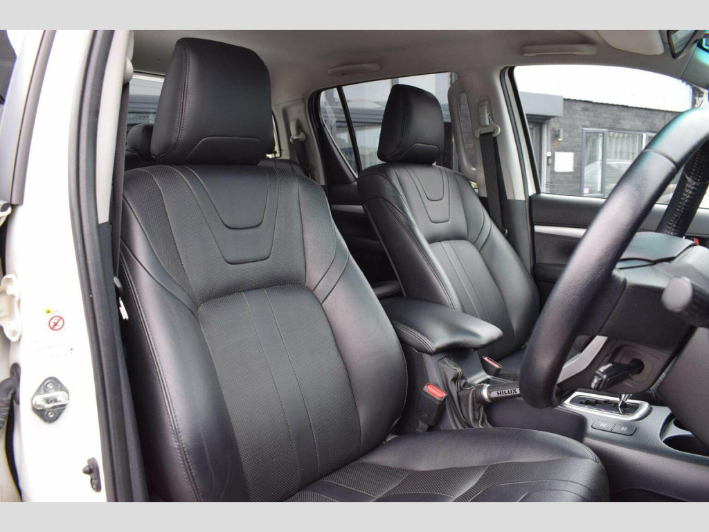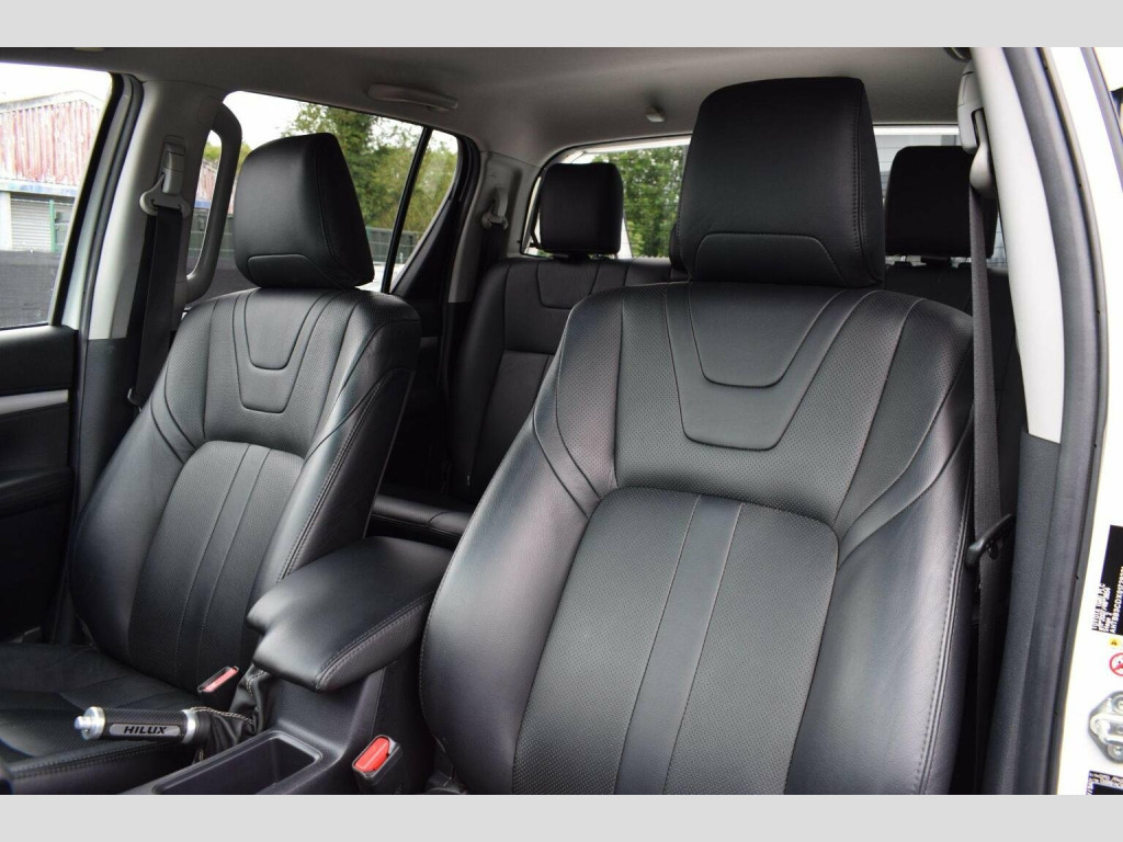 [£22999+VAT] 2017 17 Toyota Hilux 2.4 D-4D Invincible X Double Cab Pickup Auto 4WD finished in Metallic White with upgraded full Black Professional Leather interior. This truck has covered just 32000 miles by two owners and is supported with excellent stamped service history. This consists of an impressive 8 services, 6 of which are main dealer and the latest service completed in house ready for the next owner. Condition wise this pickup is presented excellently - clearly well maintained by its previous owner and lightly used with bodywork, wheels, interior etc all well preserved. Supplied with all correct documentation, handbooks etc and subjected to our usual strict pre delivery inspection and preparation process ensuring all cosmetic and mechanical elements are in good order including 4 brand new tyres. Very well equipped with a long list of extras and features including: Leather - Black - Professional, Sport Deck - Aluminium Roll N Lock with Hi-Over and Bedliner, Towing Pack - 7 Pin with Ball and Pin, 18in Alloy Wheels - Black Machined Face - 6 Spoke, 60-40 Split Tip Up Rear Bench, Aux Input, Bluetooth Connectivity, Cruise Control, DAB Digital Radio, Front Cool Box, Full Spare Alloy Wheel, Headlights - LED, Power Adjustable - Heated - Foldable Door Mirrors, Power Mode Switch on Centre Console, Rear Privacy Glass, Speakers x6, Toyota Touch 2 Multimedia with 7in Display and Go Navigation, Trailer Sway Control - TSC, USB Connection and more.