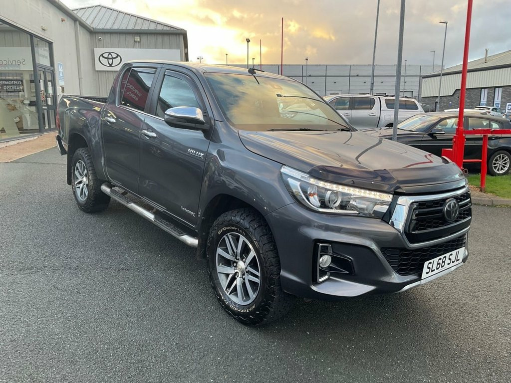 Here at Jim Walton Penrith we offer a wide range of models that have 12 months parts and labour, warranty and at least 6 months MOT. We are delighted to be able to offer for sale this 2018 ( 68 ) Toyota Hilux invincible X 2.4 D4D Double Cab Automatic.Superbly presented throughout this car comes with alloy wheels,Climate air conditioning, reverse camera,Sat nav,Cruise control, Leather Heated Seats, Electric Drivers Seat,Keyless Entry, Push Button Start, plus much more. , We have video presentations of this vehicle too simply drop us a message if you would like it sent over., Finance offers available and part exchanges welcome., Proud to supply quality used cars from our dealership in Penrith, Jim Walton has an exceptional, choice of vehicles at affordable prices – just one of the reasons you should consider buying your next, car from us! Couple that with more than 50 years' experience with an MOT and servicing centre on, site, our reputation for providing excellent customer service is something we're extremely proud of. Decuma Grey, Towing Pack - 7 Pin with Ball and Pin, 12V Socket x2, 18in Alloy Wheels - Black Machined Face , 220V Plug Socket, 4.2in Multi-Information Display Screen, 4WD Switch on Drivers Side, 60-40 Split Tip Up Rear Bench, Anti Lock Braking System - ABS with Elec, Anti-Jam Protection on Power Windows, Automatic Air Conditioning, Automatic Headlight Levelling, Aux Input, BA - Brake Assist, Black Fabric Front Door Armrests, Bluetooth Connectivity, Body-Coloured Front Bumper, Bumpers - Rear Chrome Plated, Centre Room Light, Child Safety Locks on Rear Doors, Chrome Bumper Trim, Chrome Door Belt Moulding, Chrome Handbrake Button, Chrome Headlight Surround and Rear Light, Chrome Insert on Centr