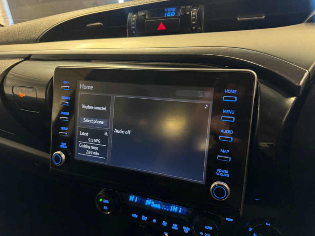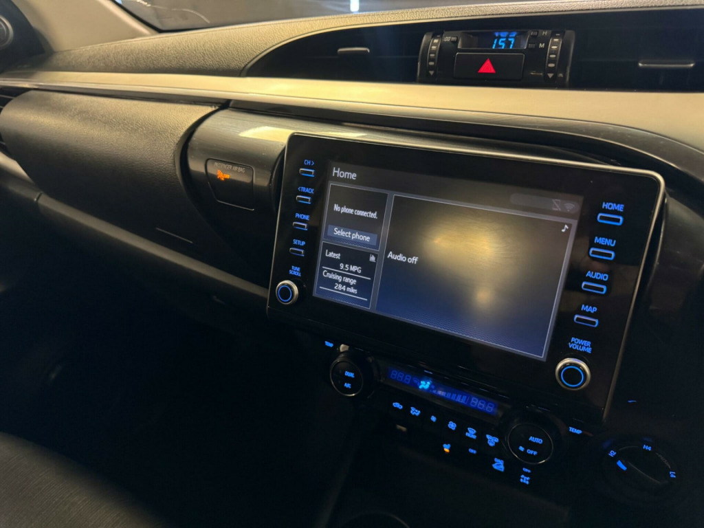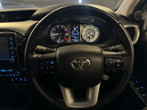 This 2022 Toyota Hilux Invincible presents an exceptional opportunity with its remarkably low mileage of just 25,000 miles. This robust 4x4 pickup is powered by a capable 2.8 litre D-4D diesel engine, delivering a strong 201 bhp and meeting Euro 6 emission standards. Its Invincible trim level ensures a premium experience, complemented by practical features such as LED headlights, dual zone automatic air conditioning, and both front and rear parking sensors for added convenience.The Hilux Invincible is designed for both work and leisure, boasting a substantial towing weight of 3500 kg, making it ideal for hauling trailers or caravans. The inclusion of heated front seats offers comfort during colder journeys, while auto headlights provide an extra layer of safety and ease of use. These carefully selected features, combined with its impressive provenance, position this Toyota Hilux as a superior choice for those seeking reliability and capability in a pickup truck. in alloy wheels, 60-40 split tip up rear bench, active traction control - atc, anti lock braking system - abs with electronic brake-force distribution - ebd, auto headlights, automatic headlight levelling, ba - brake assist, bluetooth connectivity, bumpers - body coloured, chrome rear bumper, cooler in upper glovebox, dac - downhill assist control, digital audio broadcast - dab, dual-zone automatic air conditioning, electrochromatic rear-view mirror, emergency brake-light signal - ebs - hazard type, floor mats - textile, follow me home headlights, front 12v power outlet x2, front mudguards, front passenger airbag detector, front passenger airbag on-off switch, front seat belt reminder, front and rear parking sensors, front and rear power windows, full spare alloy wheel, hac - hill start assist control, headlight cut-off reminder, headlights - led, height adjustable driver seat, highway terrain tyres, immobiliser, inner load hooks on cargo deck, intelligent adaptive cruise control, led daytime running lights, led front fog lights, led rear lights, lane departure alert, leather steering wheel and gear shift, lockable tailgate, power steering, pre-collision system with pedestrian detection, privacy glass - rear, rear fog light, rear mudguards, rear passenger footwell heating, rear view camera, retractable - power adjustable and heated door mirrors, reversing camera display in audio screen, road sign assist, seats - heated front, shade band on windshield, side steps - black, smart entry and smart start system, smartphone integration including apple car play and android auto, speakers x6, static guide lines on rear-view camera display, supplemental restraint system - srs - airbags - 7 airbags, tpms - tyre pressure monitoring system, toyota safety sense 2, toyota touch 2 multimedia, trailer sway control - tsc, usb connector, underbody protection cover, vsc - vehicle stability control, windscreen wiper de-icer