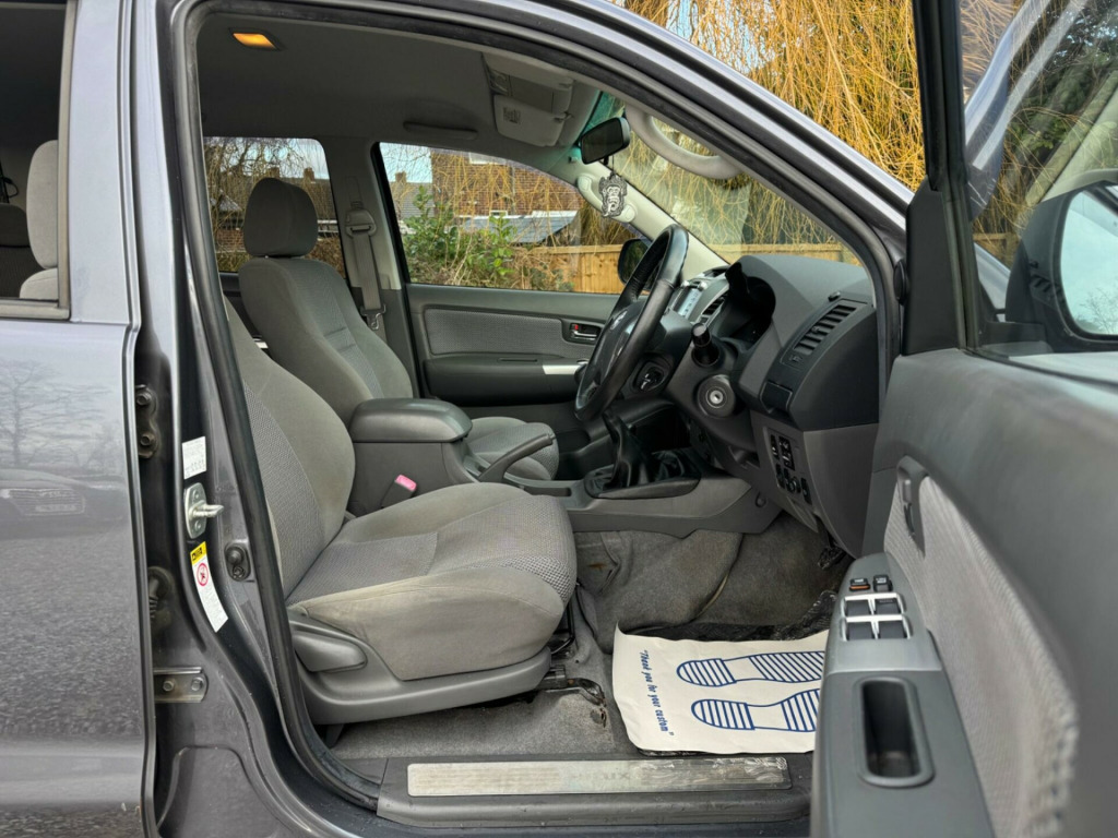 3 PREVIOUS OWNERSFULL SERVICE HISTORY - 8 SERVICES - INTERVALS 10K, 25K, 36K, 47K, 56K, 63K, 82KLOGBOOKK2This 2012 Toyota Hilux Invincible presents a remarkable opportunity with its low mileage for its age, having covered just 97,573 miles. As a 3.0 D-4D Invincible 4WD Euro 5 4dr model, it boasts a robust 3.0 litre diesel engine and a capable four wheel drive system, making it ready for any challenge. This particular vehicle has a clear vehicle history check, offering peace of mind. Notable features include a rear view camera display on the Toyota Touch system, complete with parking assistance, and automatic air conditioning with climate control for your comfort. The convenience of dusk sensing headlights that switch on automatically, along with Bluetooth connectivity for seamless phone integration, further enhance the driving experience.The highlights of this Hilux Invincible demonstrate its superior value compared to other vehicles in its class. It achieves an impressive fuel economy of 37 miles per gallon, which is a significant advantage. Furthermore, it benefits from low CO2 emissions and falls into a low insurance group, contributing to lower running costs. This combination of efficiency, economy, and desirable features makes this Toyota Hilux Invincible a compelling choice. in alloy wheels - 6 spoke, abs - anti lock braking system, airbags - curtain, airbags - driver, airbags - front passenger, airbags - front side, armrest - front, ashtray and cigar lighter, automatic air conditioning, aux-usb connectivity for mp3 and ipod connectivity, bas - brake assist system, bluetooth connectivity, body-coloured front bumper, bottle holders - doors, bumpers - body coloured, bumpers - rear chrome plated, child protection locks, chrome side bars with integrated steps, collapsible steering column, console box with lid and rear cupholder, cruise control, cupholder - front and rear, differential locking - rear, digital clock, door handles - chrome, door mirrors - chrome electric and heated with integrated indicators, driver and front passenger sun visors, drivers footrest, dusk sensing headlights, dusk sensor, ebd - electronic brakeforce distribution, electric windows - front with drivers auto up and down, engine temperature warning, front - double wishbone with coil springs, front fog lights, front grille smoked chrome with chrome surround, fuel heater, fuel indicator with low fuel warning, full size spare wheel, glovebox - lockable, headlight - levelling adjustment, headlight cleaners, headlight warning buzzer, headlight washers - electrically operated, headlights - electronic levelling, headrests - front height adjustable, high mounted rear brake light, immobiliser, impact absorbing headlining material, interior light, ladder rack, laminated privacy glass - rear windows, leather gear shift knob, load sensing proportioning system, lockable tailgate, locking wheel nuts, mud flaps - front, mud flaps - front and rear, mud flaps - rear, multi information display, optitron dashboard display, optittron meters, power assisted steering - speed sensitive, rds with pty and eon settings, radio aerial - roof mounted, radio and cd player, rear - leaf springs with double tube shock absorbers, rear headrests x3, rear seat - removable base, rear seat with tip-up function, rear under-run protector, rear view camera, rear window defogger, rear window demister, rear-view camera display on toyota touch, remote central locking, remote release for fuel cap, seat belt warning - driver, seats - front premium, seats - front seat-back pockets, seats - front sport, side impact beams, silver-coloured insert on centre cluster, speakers x6, steering column - energy absorbing deformable and retracting, steering wheel - 4-spoke leather with silver inserts, steering wheel - audio controls, steering wheel - leather trimmed, steering wheel - manual tilt adjustment, steering wheel 4-spoke with integrated audio controls and leather trim, storage box - central tunnel - armrest, tvss category 1 perimeter and volumetric alarm, tachometer, tilt adjustable steering wheel, touch screen - 6.1in, toyota touch audio system, underseat storage - rear, vsc - vehicle stability control, vehicle parts marking - major parts traceable to vin, ipod and mp3 connectivity