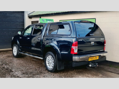 NEW STOCK ARRIVAL!! We are very pleased to offer for sale this absolutely stunning (privately owned), Toyota Hilux 3.0 D-4D Invincible Pickup Double Cab 4WD 4dr! We have just taken the vehicle in and it is one of the best we have ever seen - it is a credit to him to be fair to it (the back looks like it's never been sat in). It comes with an excellent service history (with 13 stamps in the book) and it will come with a 12 month MOT (with no outstanding advisories). It has four good tyres and it has recently been serviced. Additionally it has a lovely specification to include;, Rear Canopy, Full Leather Interior, Tow Bar, Load Liner, Alloy Wheels, Air Conditioning, Chrome Side Bars, plus much more. It has has a very easy life and will make a cracking vehicle for the new owner. It drives faultlessly. Engine, gearbox, brakes and exhaust are all working perfectly, leaving the new owner needing to spend nothing on it for the foreseeable future. The car comes with a 3 month ''Simple Protect'' Warranty, which can be extended up to 12 months, should if you wish. Part exchanges are welcome and we offer an excellent range or finance options. We can also arrange delivery directly to your door. If you would like further information about this cracking car, feel free to get in touch. HPI Clear. NO VAT!. 17in Alloy Wheels - 6 Spoke, ABS - Anti Lock Braking System, Airbags - Curtain, Airbags - Driver, Airbags - Front Passenger, Airbags - Front Side, Armrest - Front, Ashtray and Cigar Lighter, Automatic Air Conditioning, Aux-USB Connectivity for MP3 and iPod Connectivity, BAS - Brake Assist System, Bluetooth Connectivity, Body-Coloured Front Bumper, Bottle Holders - Doors, Bumpers - Body Coloured, Bumpers - Rear Chrome Plated, Child Protection Locks, Chrome Side Bars with Integrated Steps, Collapsible Steering Column, Console Box with Lid and Rear Cupholder, Cruise Control, Cupholder - Front and Rear, Differential Locking - Rear, Digital Clock, Door Handles - Chrome, Door Mirrors - Chrome Electric and Heated with Integrated Indicators, Driver and Front Passenger Sun Visors, Drivers Footrest, Dusk Sensing Headlights, Dusk Sensor, EBD - Electronic Brakeforce Distribution, Electric Windows - Front with Drivers Auto Up and Down, Engine Temperature Warning, Front - Double Wishbone with Coil Springs, Front Fog Lights, Front Grille Smoked Chrome with Chrome Surround, Fuel Heater, Fuel Indicator with Low Fuel Warning, Full Size Spare Wheel, Glovebox - Lockable, Headlight - Levelling Adjustment, Headlight Cleaners, Headlight Warning Buzzer, Headlight Washers - Electrically Operated, Headlights - Electronic Levelling, Headrests - Front Height Adjustable, High Mounted Rear Brake Light, Immobiliser, Impact Absorbing Headlining Material, Interior Light, Ladder Rack, Laminated Privacy Glass - Rear windows, Leather Gear Shift Knob, Load Sensing Proportioning System, Lockable Tailgate, Locking Wheel Nuts, Mud Flaps - Front, Mud Flaps - Front and Rear, Mud Flaps - Rear, Multi Information Display, Optitron Dashboard Display, Optittron Meters, Power Assisted Steering - Speed Sensitive, RDS with PTY and EON Settings, Radio Aerial - Roof Mounted, Radio and CD Player, Rear - Leaf Springs With Double Tube Shock Absorbers, Rear Headrests x3, Rear Seat - Removable Base, Rear Seat with Tip-Up Function, Rear Under-Run Protector, Rear View Camera, Rear Window Defogger, Rear Window Demister, Rear-View Camera Display on Toyota Touch, Remote Central Locking, Remote Release for Fuel Cap, Seat Belt Warning - Driver, Seats - Front Premium, Seats - Front Seat-Back Pockets, Seats - Front Sport, Side Impact Beams, Silver-Coloured Insert on Centre Cluster, Speakers x6, Steering Column - Energy Absorbing Deformable and Retracting, Steering Wheel - 4-Spoke Leather with Silver Inserts, Steering Wheel - Audio Controls, Steering Wheel - Leather Trimmed, Steering Wheel - Manual Tilt Adjustment, Steering Wheel 4-Spoke with Integrated Audio Controls and Leather Trim, Storage Box - Central Tunnel - Armrest, TVSS Category 1 Perimeter and Volumetric Alarm, Tachometer, Tilt Adjustable Steering Wheel, Touch Screen - 6.1in, Toyota Touch Audio System, Underseat Storage - Rear, VSC - Vehicle Stability Control, Vehicle Parts Marking - Major Parts Traceable to VIN, iPod and MP3 Connectivity, Leather - Black.