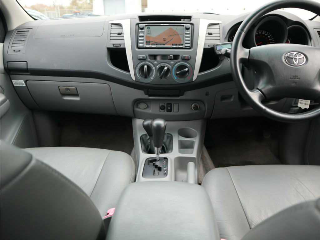 Toyota Hi-lux INVINCIBLE D-4D 4X4 double cab with an automatic gearbox, just two owners and 98000 miles. A rugged and versatile SUV offers a spacious double cab and a 4-wheel drive system. The comfortable and cab features leather upholstery. r conditioning, colour satnav, full leather, front parking sensor, power steering, rear parking sensor, abs, multiple airbags, remote central locking, electric front windows, electric mirrors, rear electric windows, front armrest, alloy wheels, led foglights, led headlights
