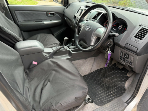 This 2012 Toyota Hi-lux Invincible D/Cab Pick Up 3.0 D-4D 4WD 171 Auto is an excellent example of this brilliantly solid truck that was built by Toyota to last and be a very hard working truck. It's a reliable and powerful Diesel pickup with only 34700 miles on the clock. It comfortably seats 5 and comes with an MOT that expires on 21/11/2025, ensuring peace of mind for the next few years. This vehicle has been well-maintained, with only 1 previous registered keeper(s). It boasts features such as Bluetooth connectivity, cruise control, digital clock, fuel heater, and a lights on warning buzzer, making it a practical and comfortable option for long drives or hauling cargo. With its 4WD capability, this Toyota Hi-lux is ready for any terrain or weather conditions, making it a versatile and dependable choice for any driver. I am the 2nd owner of this truck I have been using it daily it drives extremely well with bags of pulling power the Automatic gearbox makes it a joy to drive. Toyota named this truck Invincible because they truly are. the truck will have a new mot done for the new owner so comes with 12 months MOT uise control, abs, brake assist, immobiliser, locking wheel nuts, remote central locking, front fog lights, full size spare wheel, headlight washers, 17'' Alloys