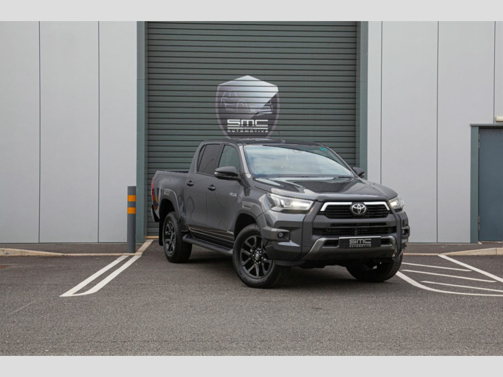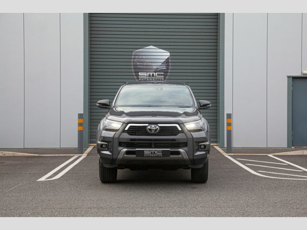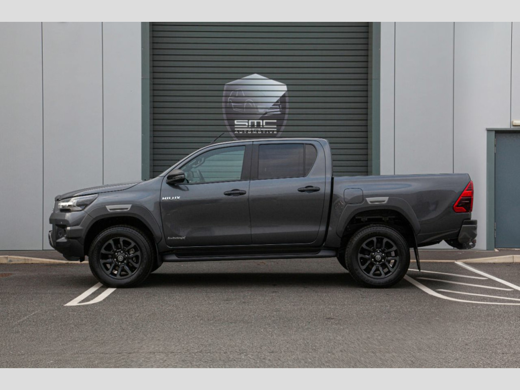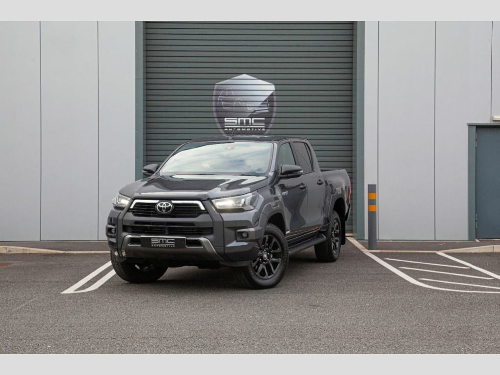 Vehicle DescriptionBrand new 2021 71 Hilux Invincible X 2.8 Auto 204 HP – 5 Physical cars due in September beat the 12 Month waiting list. Choice of Colours: 3 x Decma Grey, 1 x Galaxy Black, 1 x Nebula BlueWith the 3.0 VW Amarok and Mercedes X Class out of production and the Ford Ranger downsized to 2.0 the Range Topping 204 Horse Power 2.8 Hilux Invincible X really is the pick up to have. These stunning examples are all finished in either Decuma Grey metallic (as per images) , Galaxy Black or Nebula Blue with Black leather interiors. OPTIONAL FEATURES FITTED Automatic gearboxMetallic paintFEATURES INCLUDED WITH THE INVINCIBLE X18” Gloss Black 5-spoke alloy wheelsJBL Premium sound systemToyota touch 2 with Go NavigationPower height-adjustable driver seatSTANDARD FEATURESBluetooth connectivityApple car play/Android autoBlack side stepsPrivacy glassAmbient lightingSmart entryKeyless startAuto headlightsElectric folding heated door mirrorsAdaptive cruise controlElectric front seatsHeated front seatsLane departure alertCooler in gloveboxFront and rear mudguardsFront and rear park assistReverse cameraRoad sign assistSupplied with the balance of manufacturers 5 Year warranty, both keys and full book pack.£37,994 + vatLibrary Images Further options and Upgrades available including Colour coded Canopies Open by appointment only. 01244 539760 or 07710 096345 or 07890 000145