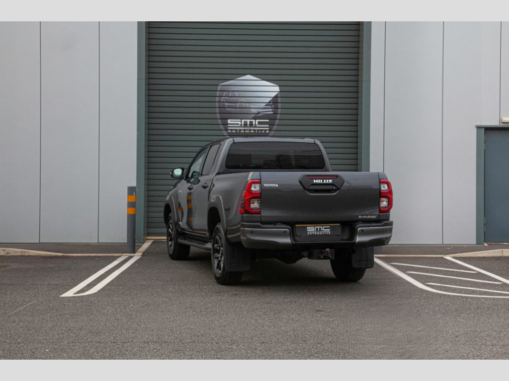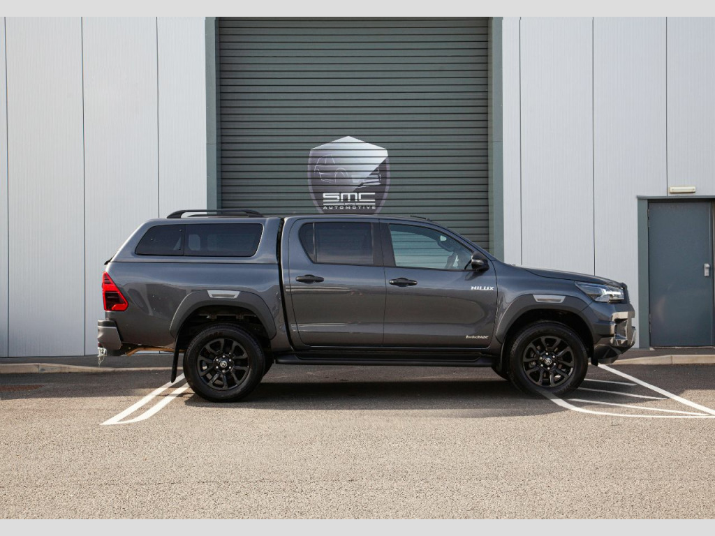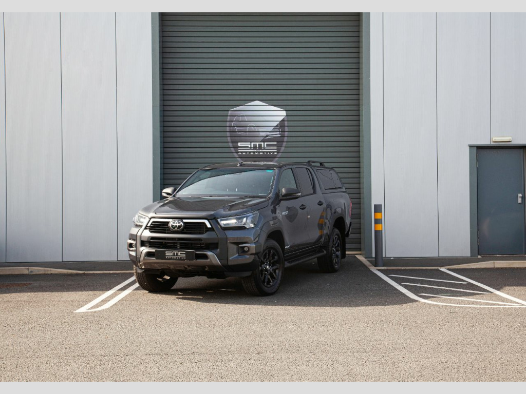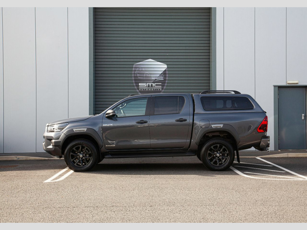 Vehicle DescriptionBrand new 2021 71 Hilux Invincible X 2.8 Auto 204 HP – 5 Physical cars due in September beat the 12 Month waiting list. Choice of Colours: 3 x Decma Grey, 1 x Galaxy Black, 1 x Nebula BlueWith the 3.0 VW Amarok and Mercedes X Class out of production and the Ford Ranger downsized to 2.0 the Range Topping 204 Horse Power 2.8 Hilux Invincible X really is the pick up to have. These stunning examples are all finished in either Decuma Grey metallic (as per images) , Galaxy Black or Nebula Blue with Black leather interiors. OPTIONAL FEATURES FITTED Automatic gearboxMetallic paintFEATURES INCLUDED WITH THE INVINCIBLE X18” Gloss Black 5-spoke alloy wheelsJBL Premium sound systemToyota touch 2 with Go NavigationPower height-adjustable driver seatSTANDARD FEATURESBluetooth connectivityApple car play/Android autoBlack side stepsPrivacy glassAmbient lightingSmart entryKeyless startAuto headlightsElectric folding heated door mirrorsAdaptive cruise controlElectric front seatsHeated front seatsLane departure alertCooler in gloveboxFront and rear mudguardsFront and rear park assistReverse cameraRoad sign assistSupplied with the balance of manufacturers 5 Year warranty, both keys and full book pack.£37,994 + vatLibrary Images Further options and Upgrades available including Colour coded Canopies Open by appointment only. 01244 539760 or 07710 096345 or 07890 000145