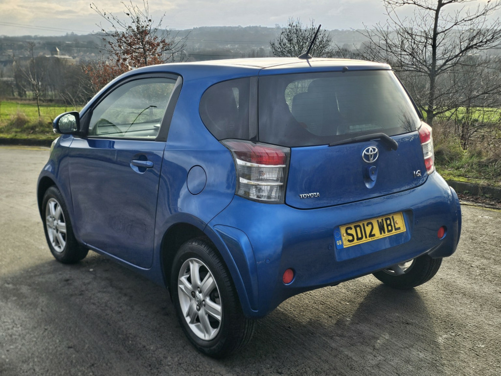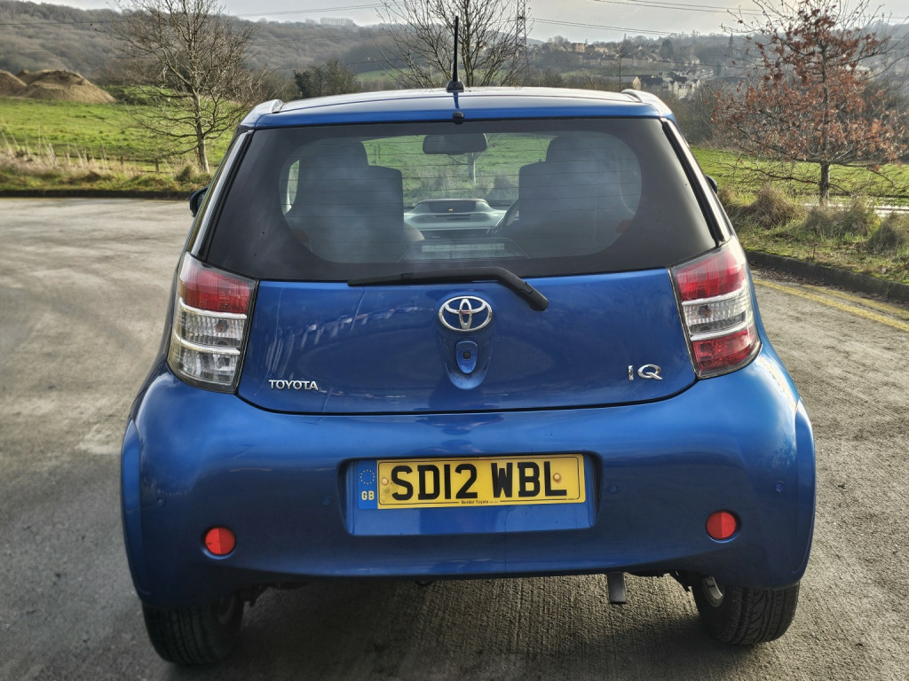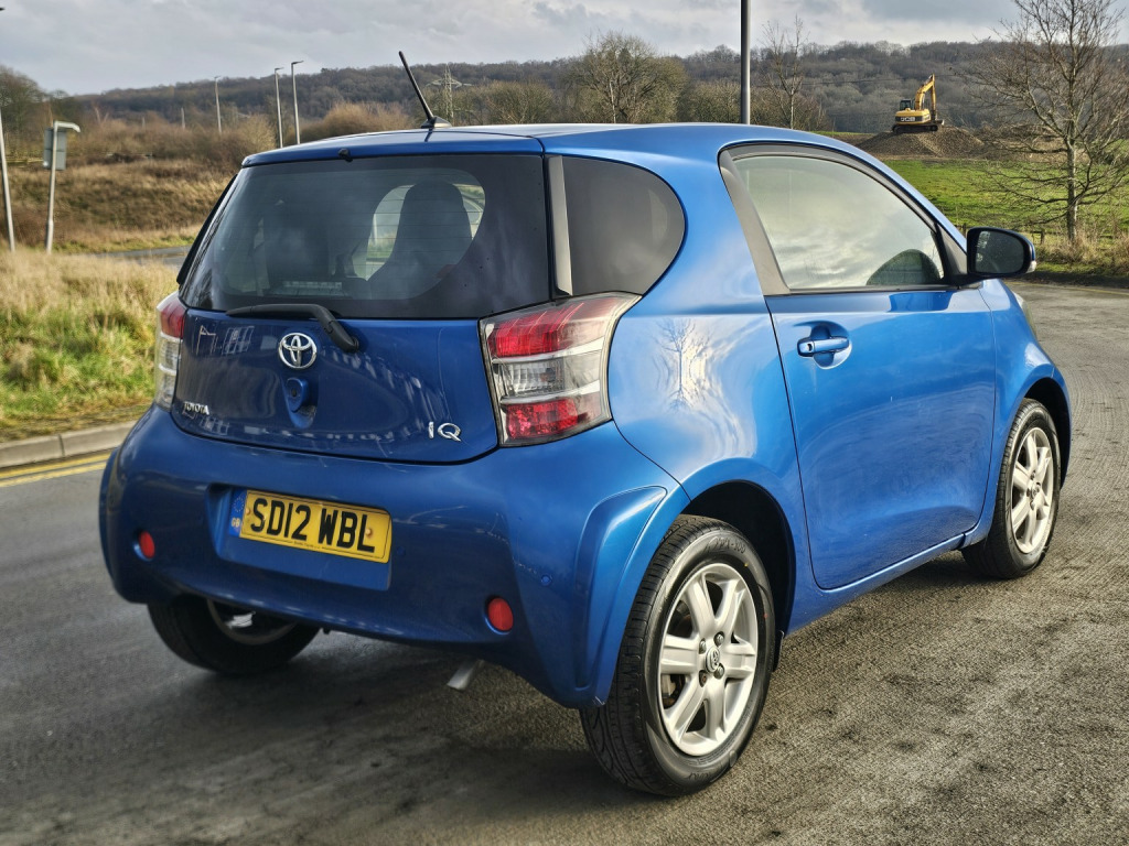 * Toyota IQ, * 1.0 VVT-i 2, * 2012 12 plate, * Only 29,000 miles, * Air conditioning, * Electric windows & mirrors, * Alloy wheels, * Parking sensors, * Keyless start ( 2 keys ), * Front Fog, * Only 2 previous owners, * 55–65 mpg , * Metallic blue, * Only £20 road tax, * Service history